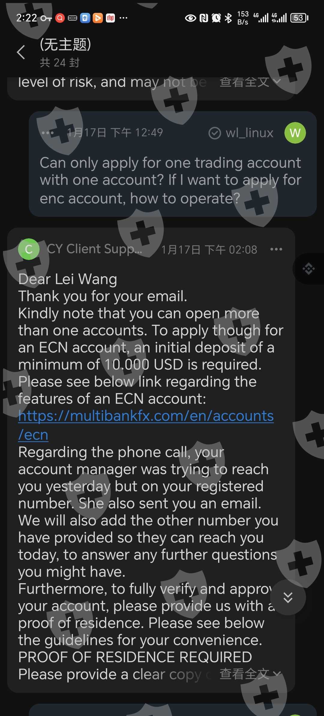 按客服要求入金10000美金,开通ecn账户,在我入金后并得到账号开始交易的时候,系统显示禁止交易,向客服邮箱发送多个邮件都无法得到有效回复。