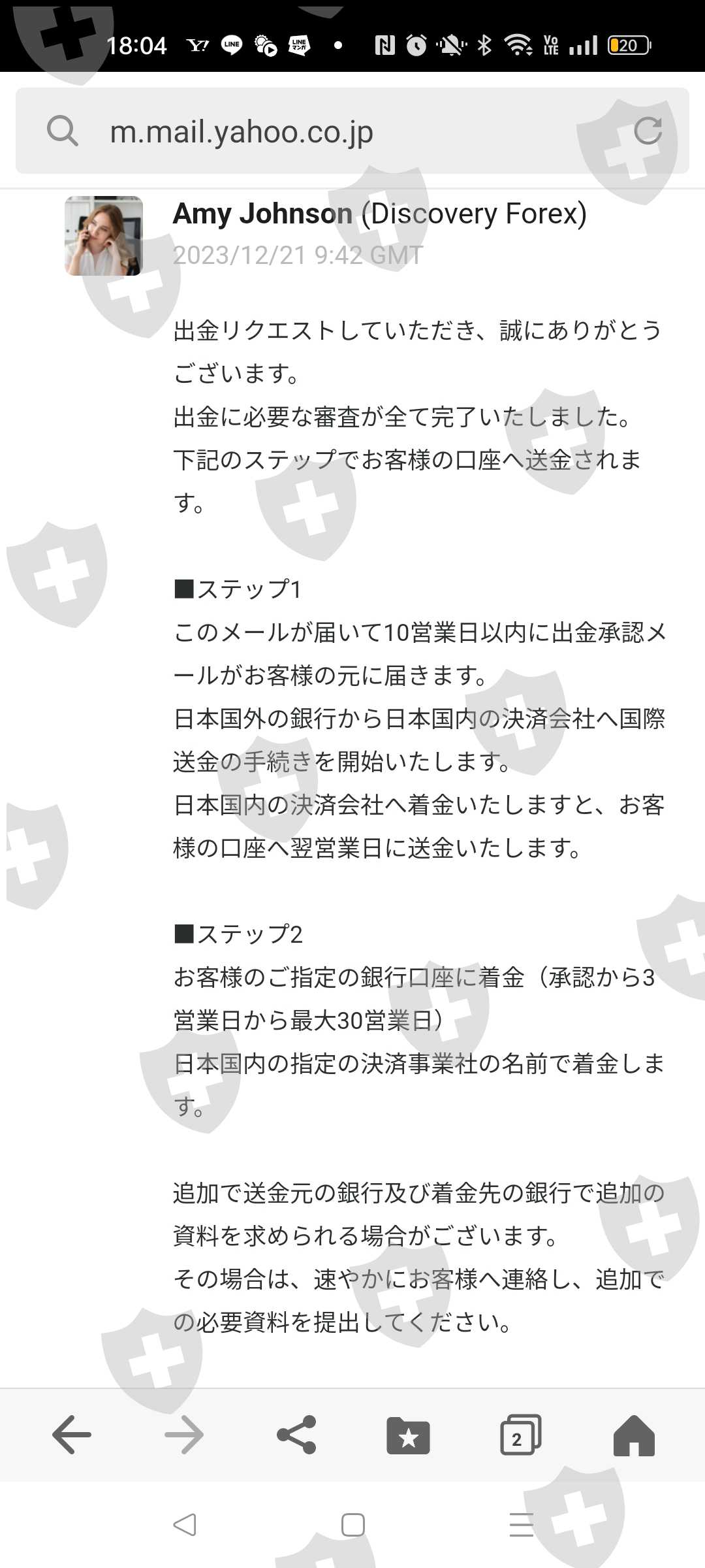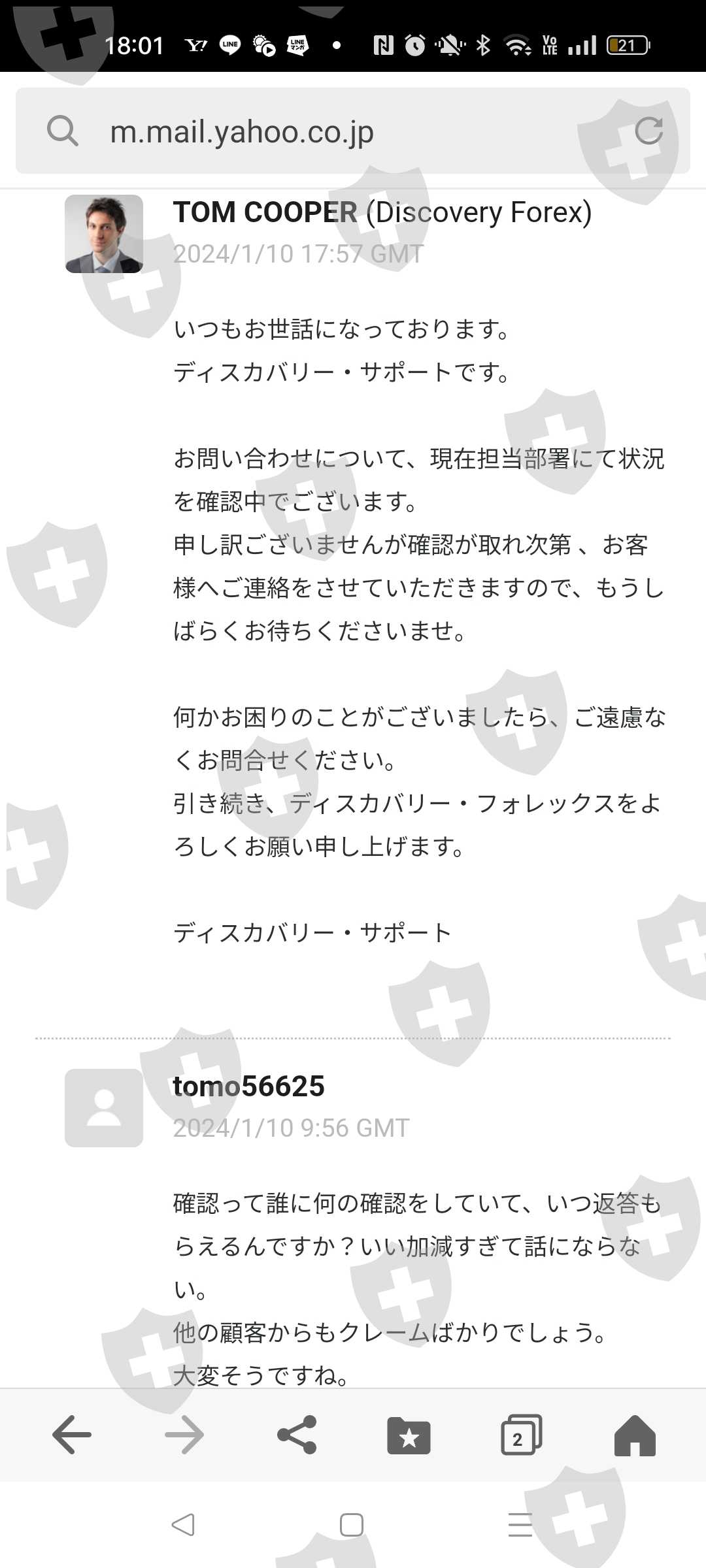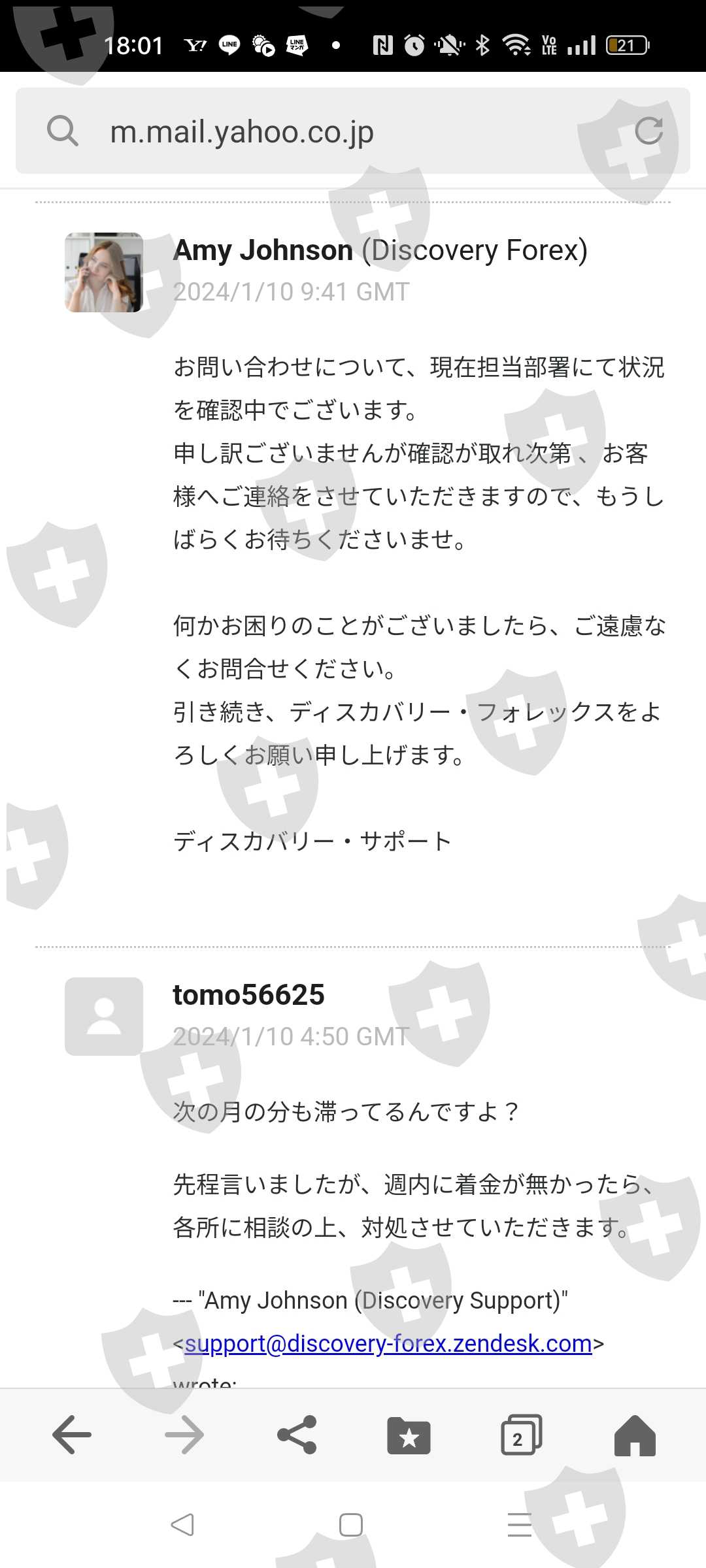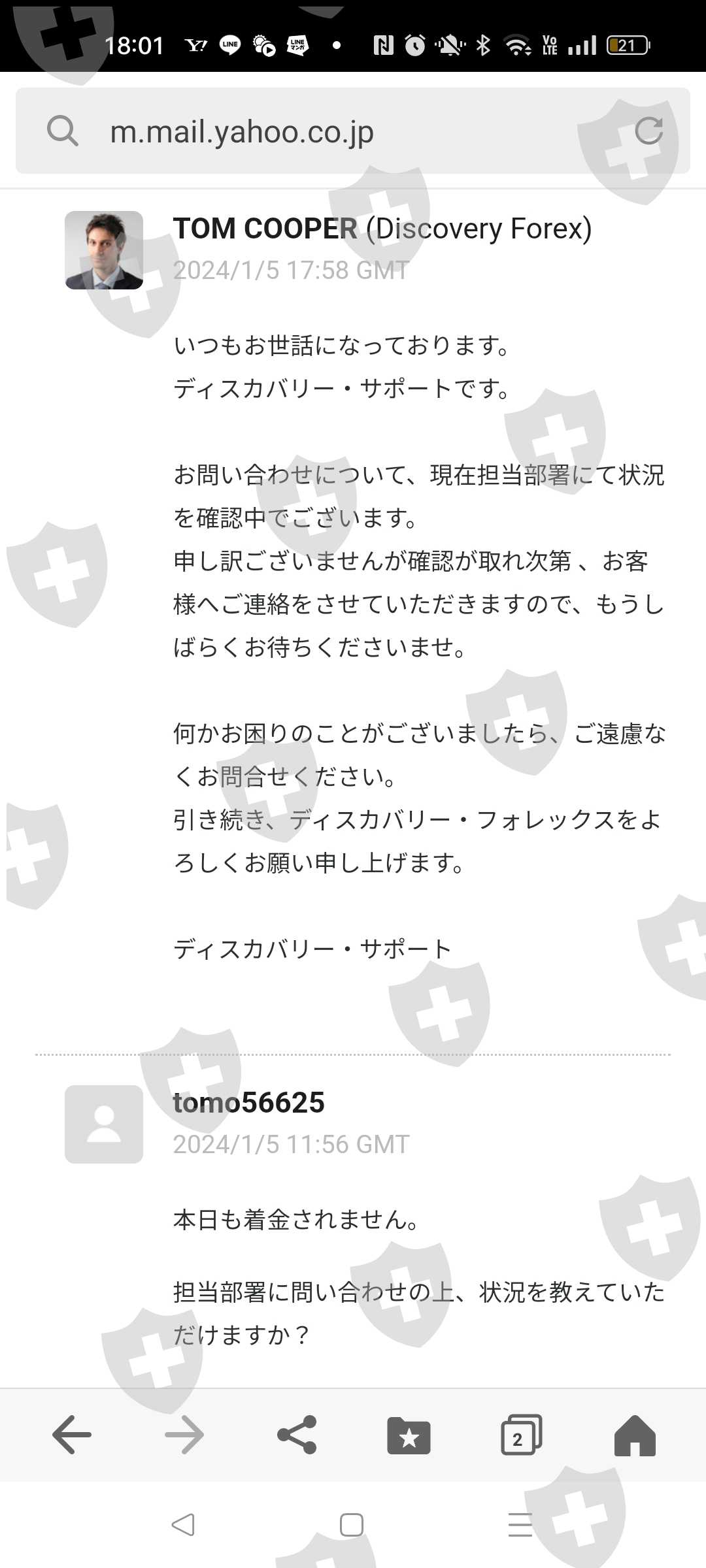 我还没有能够提取我的利润中的72,000日元,这是我在两个多月前的11月13日申请提取的。本来这家公司好像有延迟提款的习惯,最初报道要5个工作日才能到账,后来逐渐增加到10个工作日,然后是30个工作日(本身就是不正常的)需要 30 个工作日)。我去了。到现在为止,我已经可以提款了,虽然有延迟,但距离我11月提款已经过去了30个工作日,我也多次联系他们。我收到的回复总是这样的样板消息: ,“我正在和主管部门核实。”虽然真相被揭露的案例很少,但有没有人遭受过类似的伤害呢?向我介绍这家经纪商的名为 FX Selection 的 IB,现在已经无法联系了。也许这是一位大师。这次,我申请小额提取利润,但我在这里存了大约360万日元。我担心我的钱拿不回来了。有懂行业的人有解决办法吗?谢谢。