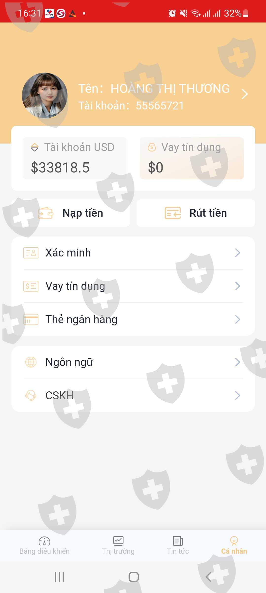 Tôi tham gia giao dịch tại nền tảng IG từ ngày 27/12/2023, tài khoản số 55565721 với tổng số các lần nạp tiền khoảng 12,000usd. Tôi thử rút số tiền nhỏ trong nền tảng IG 2 lần đầu thì được. Khi tôi đã có lợi nhuận tôi rút lần 3 thì nền tảng bắt tôi nạp tiền Vip mới cho rút, tôi thấy điều này hết sức vô lý và tàn ác. Giờ tôi không có tiền nạp Vip vì số tiền nạp nó quá cao, cao hơn cả số vốn tôi đã nạp vào nên tôi không có khả năng nạp để có thể rút được tiền đồng nghĩa với việc tôi sẽ mất trắng tài khoản. Vui lòng hỗ trợ tôi rút tiền. Nếu không rút được tôi sẽ chết mất.