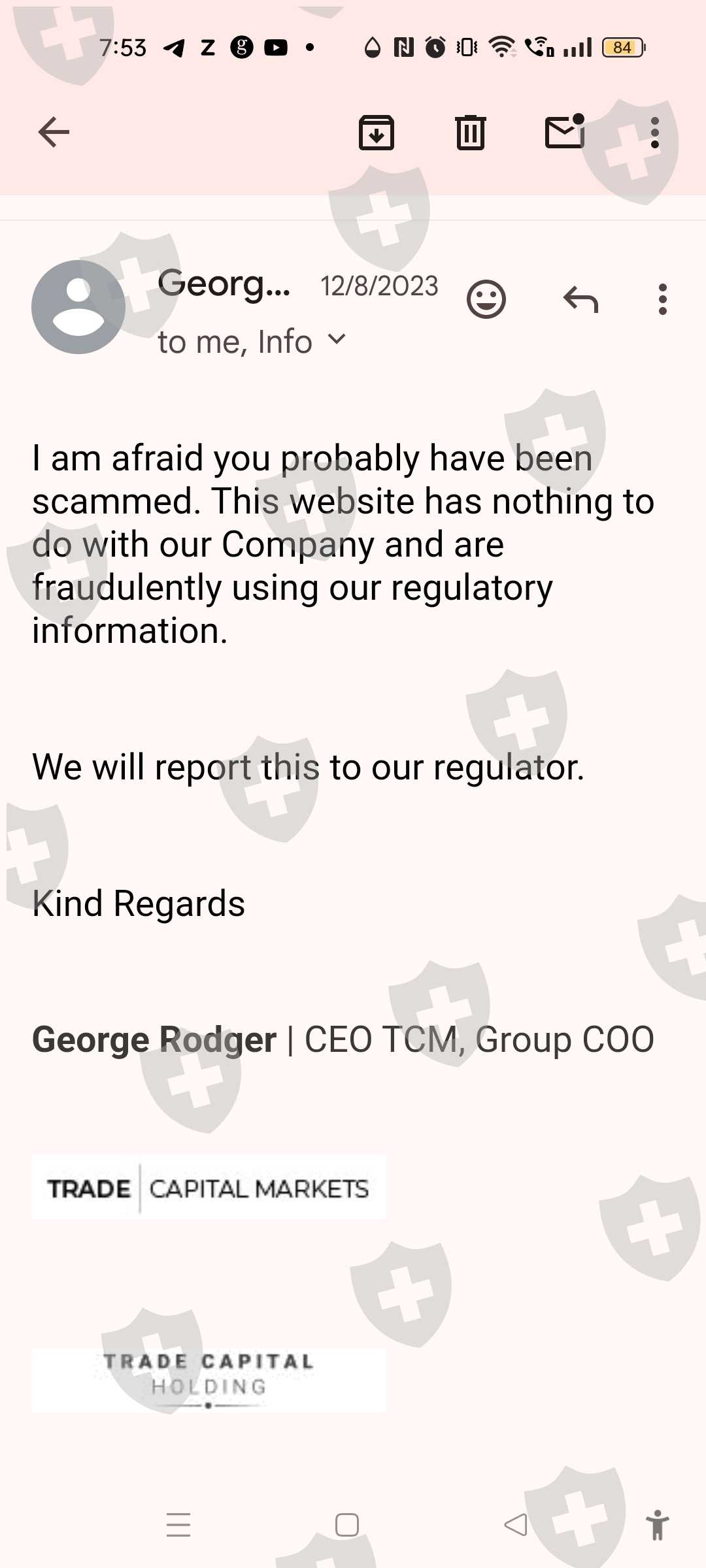 I have invested 5000 usd with tcmglobals gold account maid some profits also but when am asking withdrawal apart from my profit only my investment also they are not responding past one month when am raising request every day they blocked my account find the attached document below