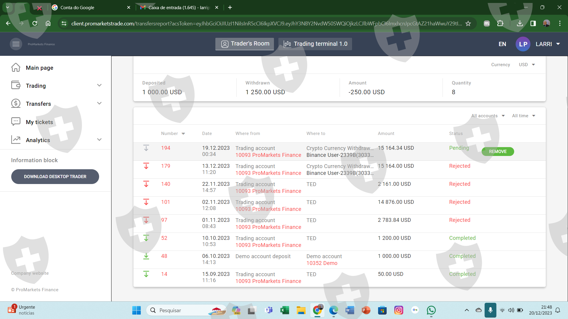 早上好,我是一个计划的受害者,在该计划中,Orionpromarketsfinance.com 被用来为客户建立安全性和初始可信度,该计划将进入第二阶段,其中包括将资源转移到 promarketsfinance.com 于 13/08/23 进行管理我按照所附收据购买了 Orion 软件,并在 instaran Info 62 838 69187703 的指导和建议下安装了系统并贡献了资源,他帮助我并操作了系统,几天后,建议 https://promarketsfinance .com/ 并转移帐户并开始进行申请。他建立了一定程度的信任,并要求我签署一份协议头寸文书,随后他封锁了我的资源,不再向我报告,附有文件。我要求关闭账户,直到今天我还没有收到回复。谢谢