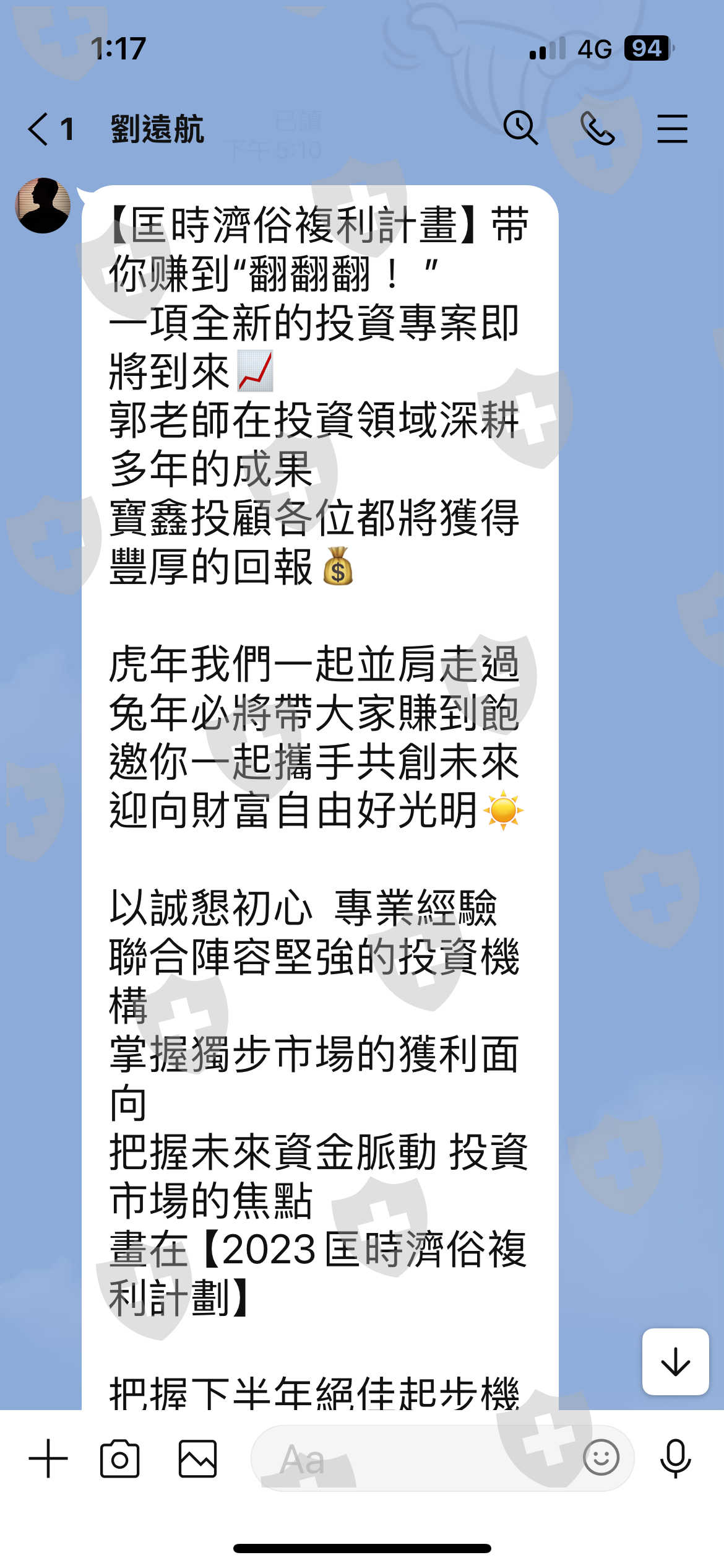 12/9在line有再連絡到12/15起寳鑫投控劉遠航及V陳致遠起不讀不回,