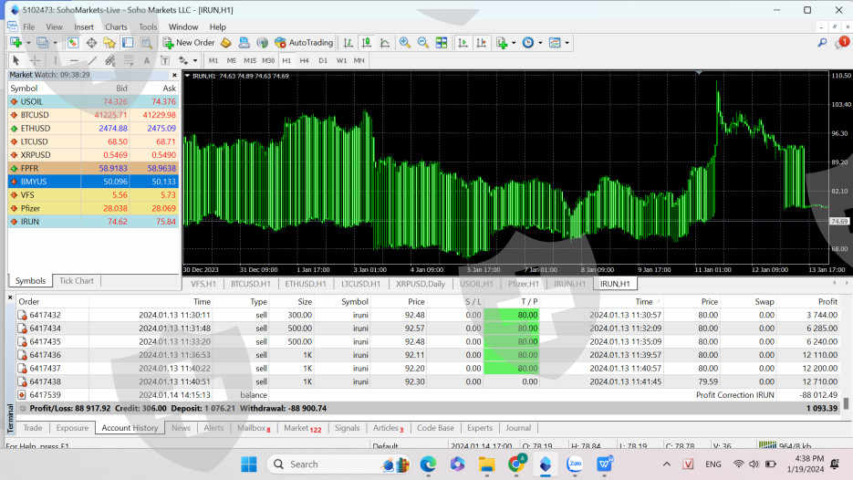 My MT4 is 5102473, On January 13rd, 2024, I placed some orders with the code IRUNI and achieved a profit of 88,012.49 USD. But on January 14th, 2024, Soho Markets deducted all of my achievement profits in my account. They sent an email to explain that it was due to a incorrect quotation price of the IRUNI on January 13rd, 2024. However actually the price of the IRUNI has been fluctuating up and down like that during the past 2 months. I required Soho Market to add back their deduction, but I did not receive any response and also can not contact to the person in charge my account. I asked them to contact me, but no one contact. I require Soho Markets to return my profits of 88,012.49 USD.