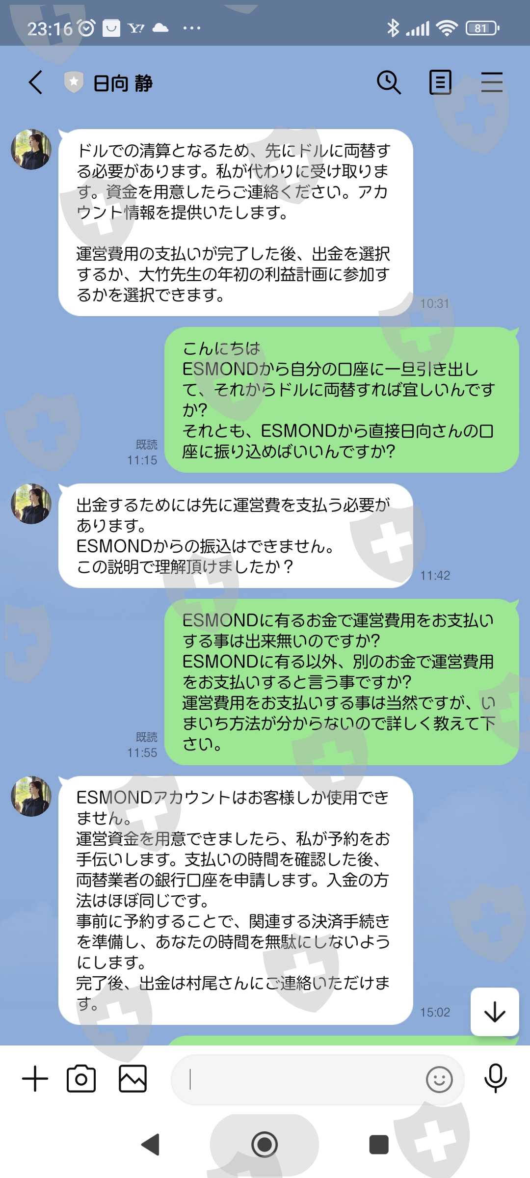 刚开始的时候,我可以提取少量的1000美元,但之后,我被要求将操作费从我的账户外单独转账。这个运营成本是 ESMOND这不是运营成本,而是大竹和义管理学院系统的运营成本。
