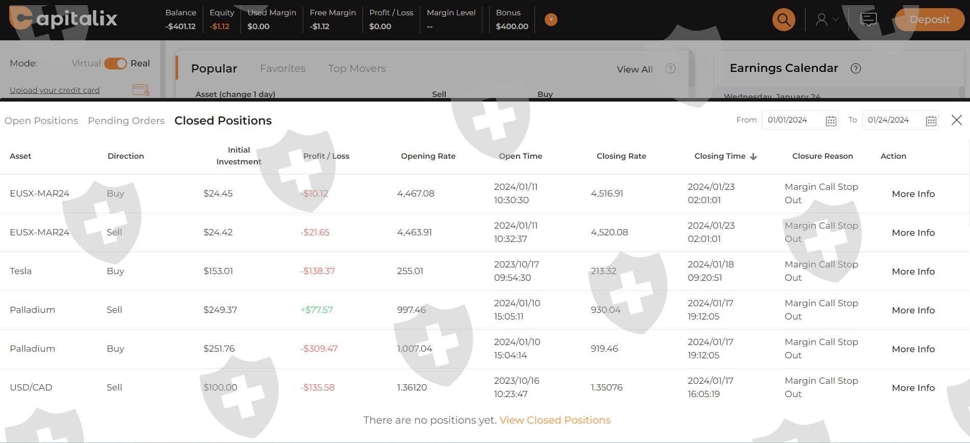 En octubre del 2023 comencé a invertir por primera vez en Capitalix, como yo apenas comenzaba a aprender solo invertir lo minimo que me exigieron para abrir la cuenta que fueron 200$, luego me indicaron que si quería obtener el 20% de ganancia de lo invertido debía invertor 2,500 $, luego me invitaron a webinar y sesiones donde te mandaban a llamar a tu asesor para que te dijera como seguir invirtiendo y la ganacia ofrecida nunca la vi, durante las siguientes semanas mi manager me indicó como siempre en qué debía invertir, solo que al darse cuenta que no invertía más y que lo que hacía era retirar (logré recuperar solo $ 600, este año me hicieron invertir en posiciones desde el principio de estuvieron en negativo y que me dejaron sin saldo disponible libre, al paso de los días me informaron que había ocurrido algo en el mercado y que tuvieron que cerrar la cuenta y que si no depositava $ 600 no se recuperaría la cuenta y mi dinero. Por dupuestso que no inverti más pero ahora al ingresar a la cuenta no tenga nada de ccapitay y las posiciones todas estáb cerradas y se quedaron con mi dinero esos ladrones.