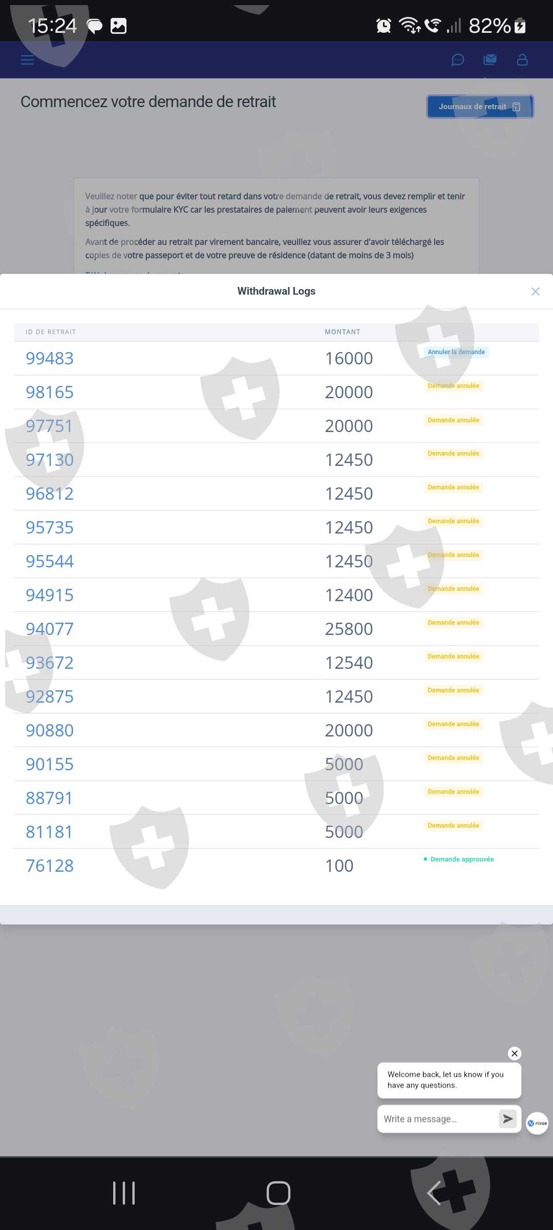 Je n'ai plus de placement en cours j'ai 16200€ sur mon compte j'ai demandé un retrait de 16000€