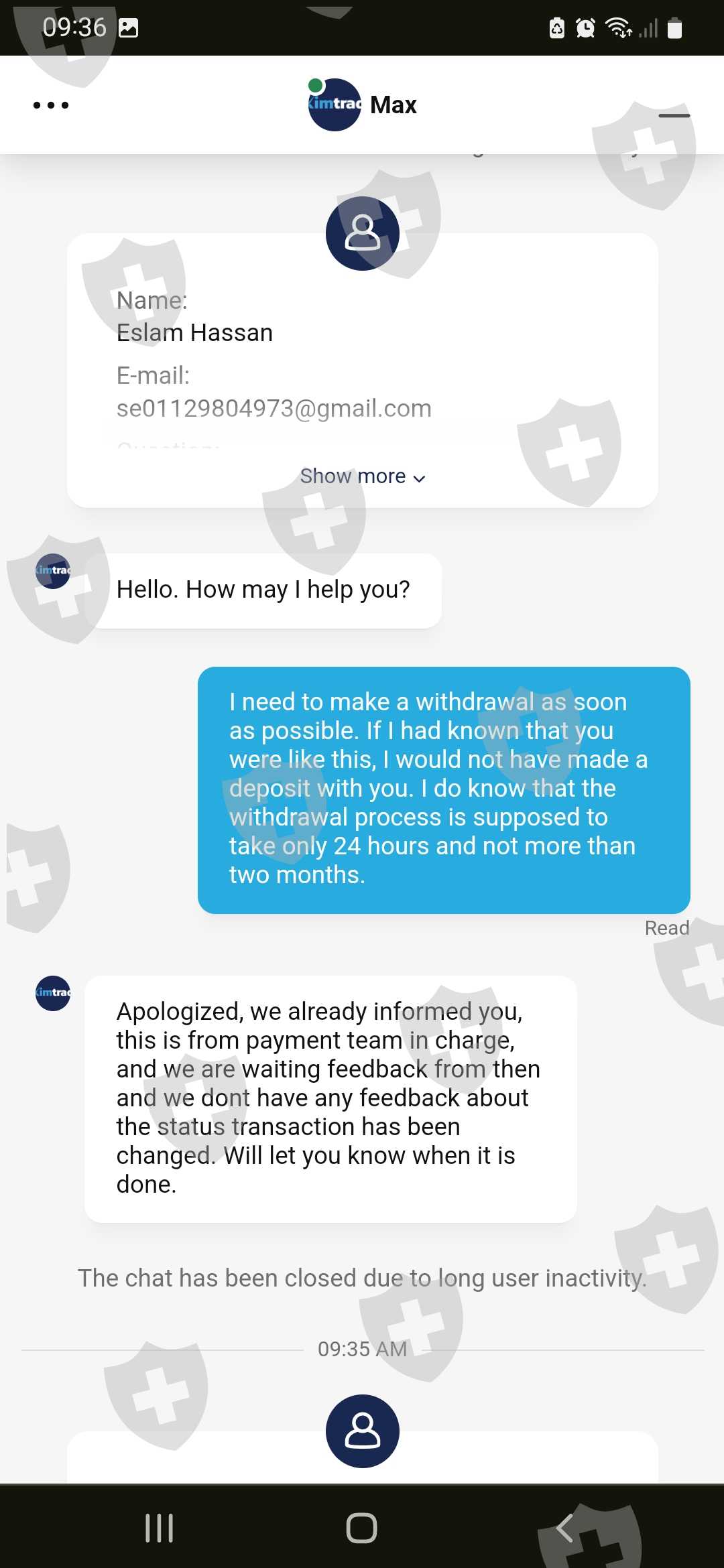 لقد قمت بعمليه سحب منذ 23 فبراير ومر اكثر من شهرين علي هذه العمليه ولم يصل لي شئ وكل ام اكلم الدعم يقولي لقد تم الموافقه علي عمليه السحب واحناا الان في انتظار مذود الدفع ارجو الحل لهذه لان الوسيط ده كده نصاب واحتيال