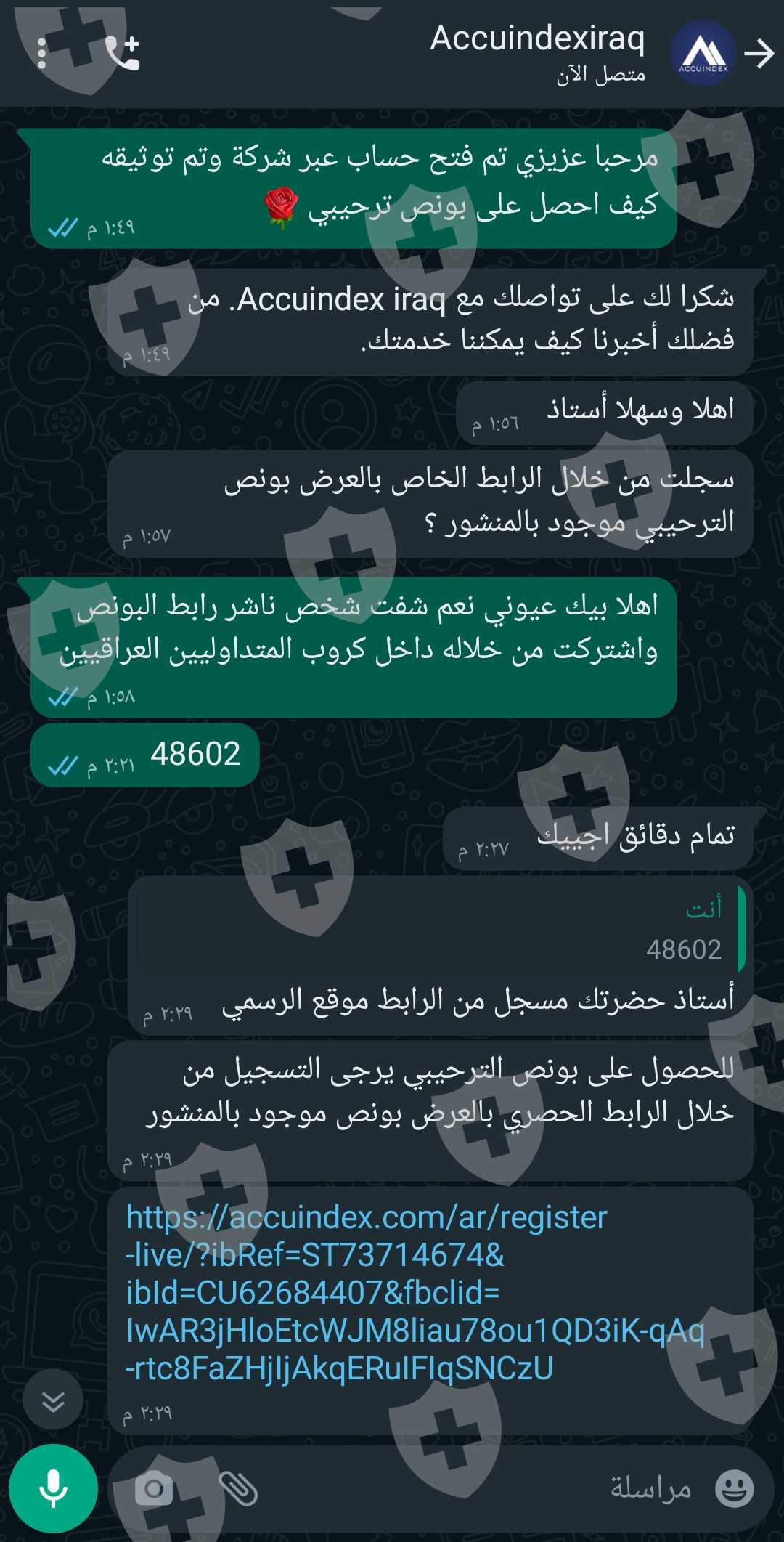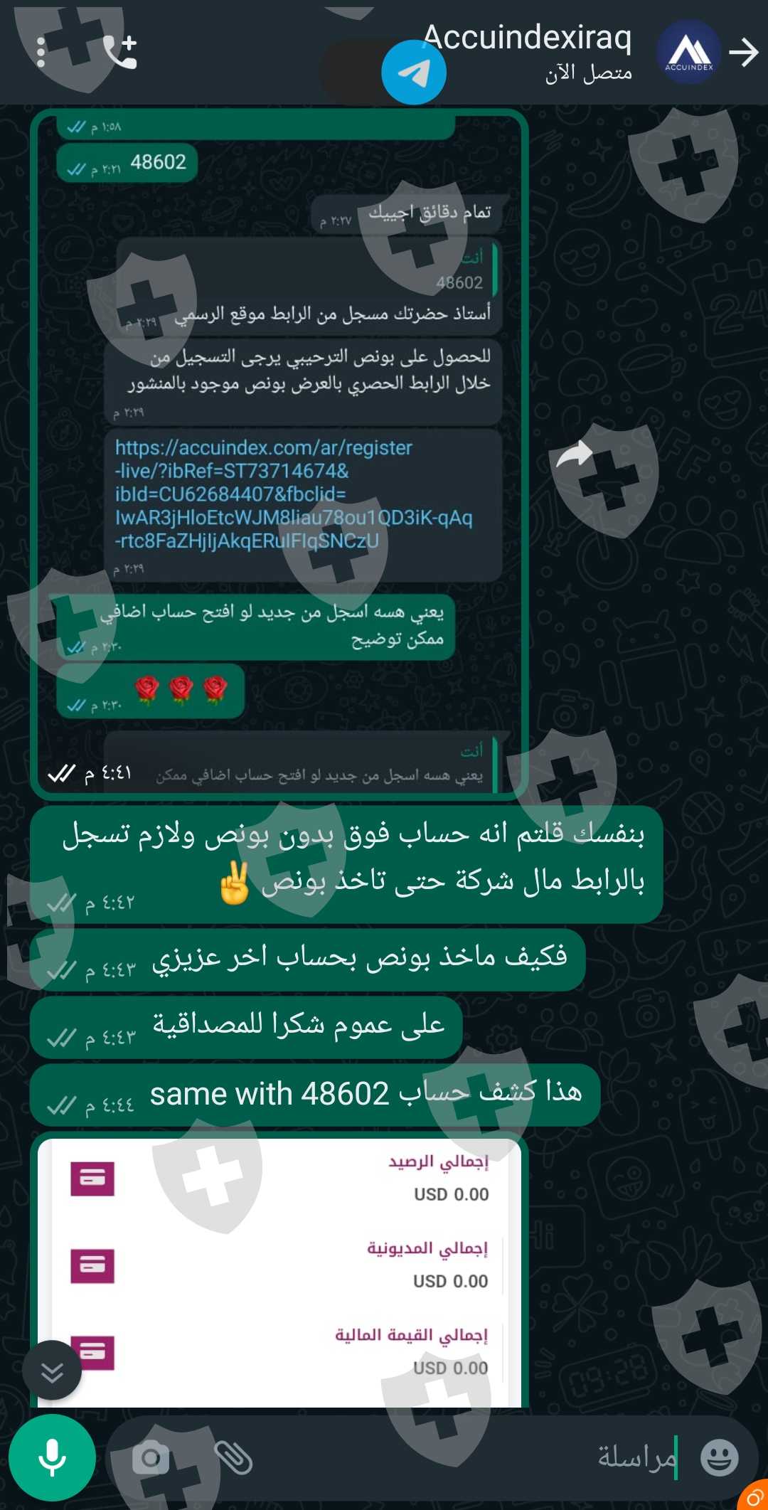 我通过公司注册,他们给了我50美元的奖金,条件是我可以获得100美元的利润,当利润达到100美元后,在不违反条件的情况下,他们以我有另一个账户为借口,不给我利润。 . 当我要求他们给我一份我的其他帐户的奖金声明时,他们没有回复我的 WhatsApp 消息。我通过公司注册,他们给了我 50 美元的奖金。条件是我获得 100 美元的利润。当利润达到100美元后,在不违反条件的情况下,他们以我有另一个账户为借口,没有给我利润。当我要求他们给我一份我的其他帐户的奖金报表时,他们没有通过 WhatsApp 回复我的消息。