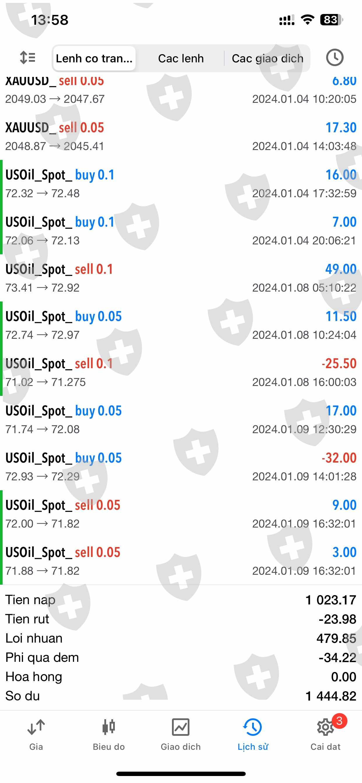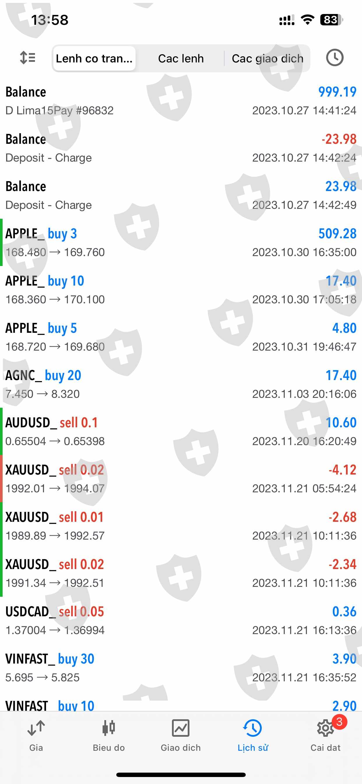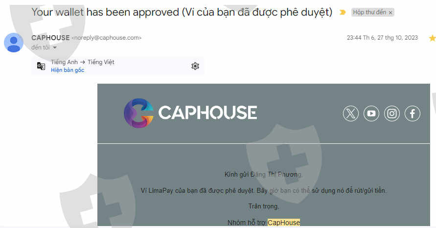 Tôi đầu tư vào sàn Caphouse ngày 27/10/2023 với số vốn là 999.19$, số MT5 là 7300089; tôi giao dịch 1 thời gian thì đặt lệnh rút tiền nhưng không được. Nhân viên sàn báo tôi phải giao dịch 10 lot sản phẩm mới có thể rút tiền. tính đến nay tôi đã giao dịch hơn 10 lot sản phẩm và đặt lệnh rút tiền với số tiền là 1,444$ ngày 9/1/2024 nhưng không được thực thi, vấn đề này tôi có mail sàn, liên hệ tổng đài rất nhiều lần nhưng vẫn chưa được hỗ trợ. Nhờ ad giúp tôi, tôi xin cảm ơn rất nhiều ạ