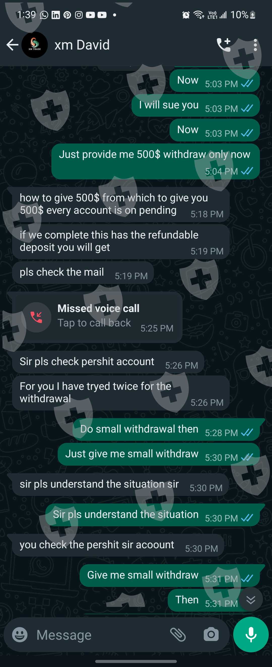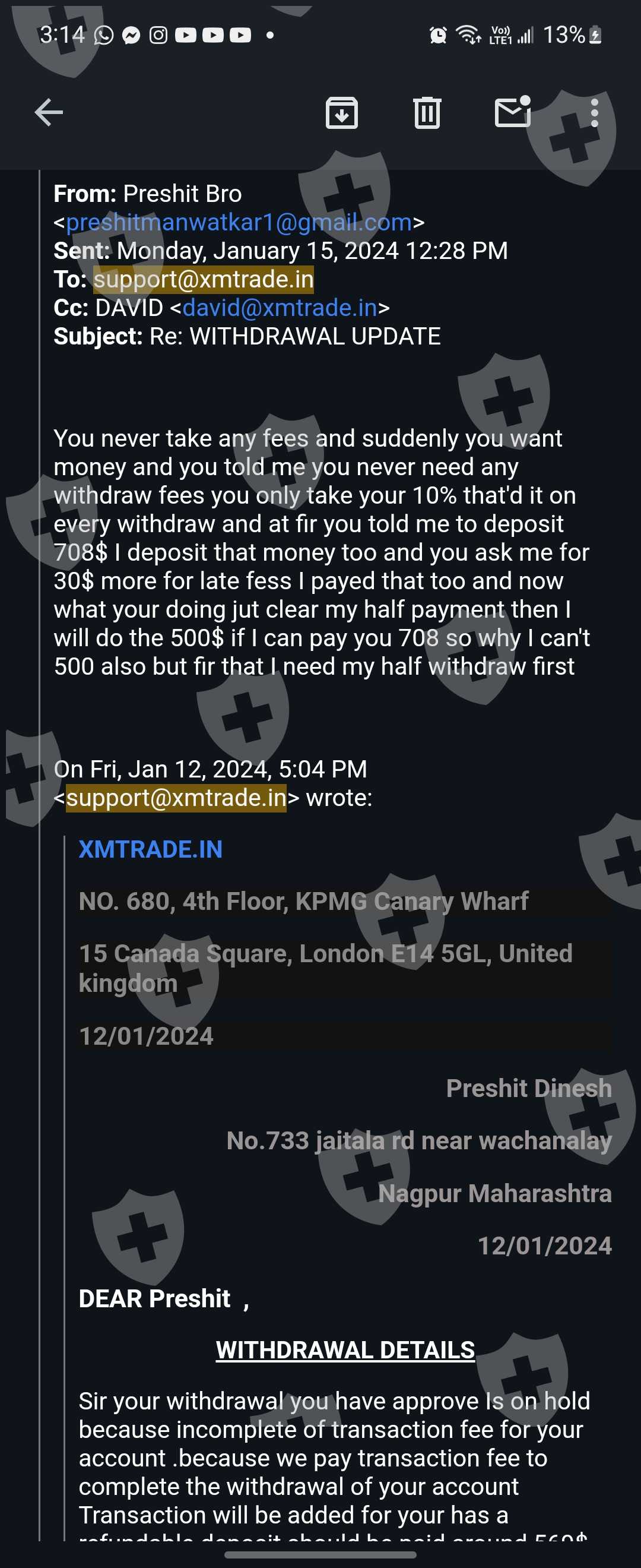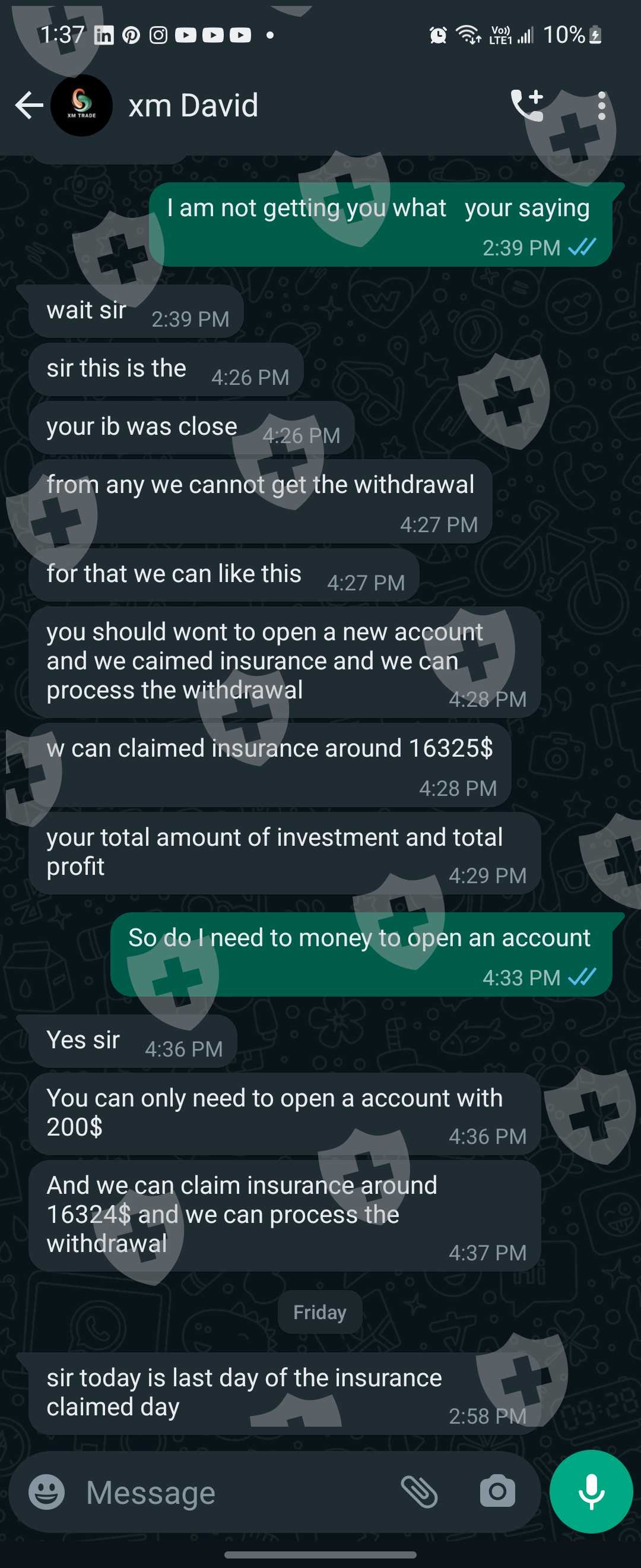 xmtrade the website name is xmtrade.in I provide them clients and they told me I am ib approx I have a withdraw of 16k$ they are asking me to pay 700$ for claiming insurance otherwise all my clients account will freeze and if I payed that amount they will provide me the withdrawal in just 20min and when I payed they are asking me for 30$ extra for late fees and after I payed 730$ they are asking me for to pay 560$ extra for withdraw fees and all that fees are refundable but they are all laying everytime and I am in very difficult situations please please help me someone how Can I solve this problem otherwise I have to do suicide just because of that company because if that money is mine I am not worried about any thing but it's about other people's money so that's my my clients are trusting me and i payed them money buy borrowing money on intrest I given them approximately 1100$ for nothing in my pocket but they are not even providing me a single $ in my binance ac please help me or guide me how can I get out through that problem or hire me I want money otherwise thy are doing scam and lots of people scam and diye just because of there fault please some help me I am very thankful to any one