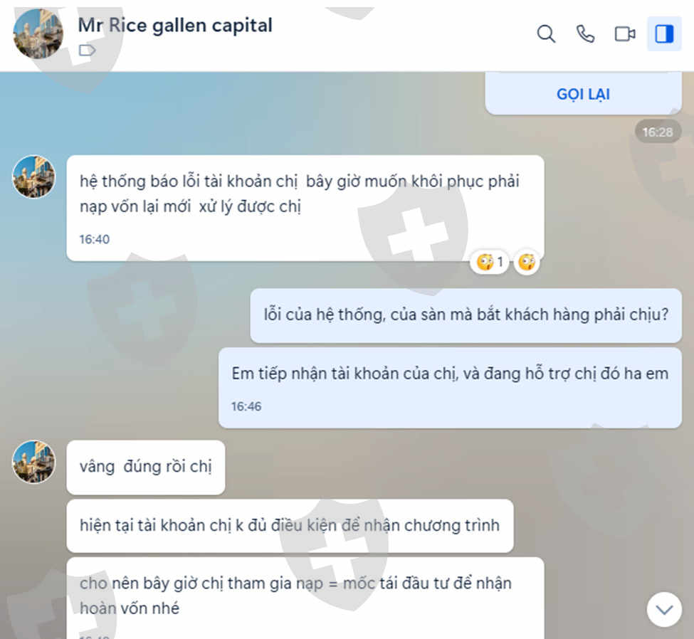 Tôi nạp vốn và giao dịch tại sàn gallen capital .ngày 14/12/2024 tôi nạp vốn vào tài khoản MT5 số 5515890 và