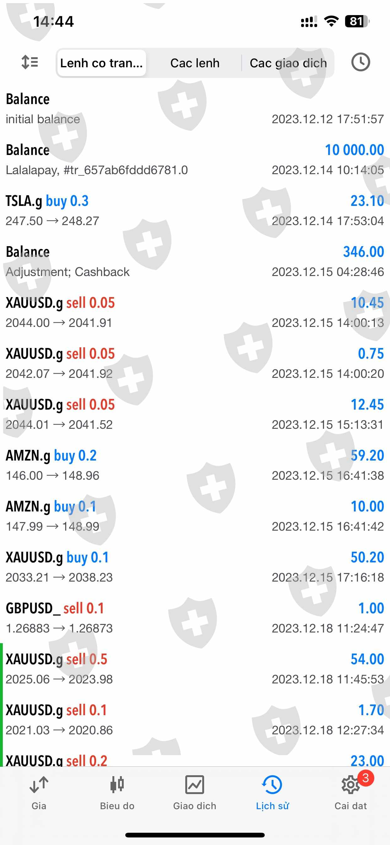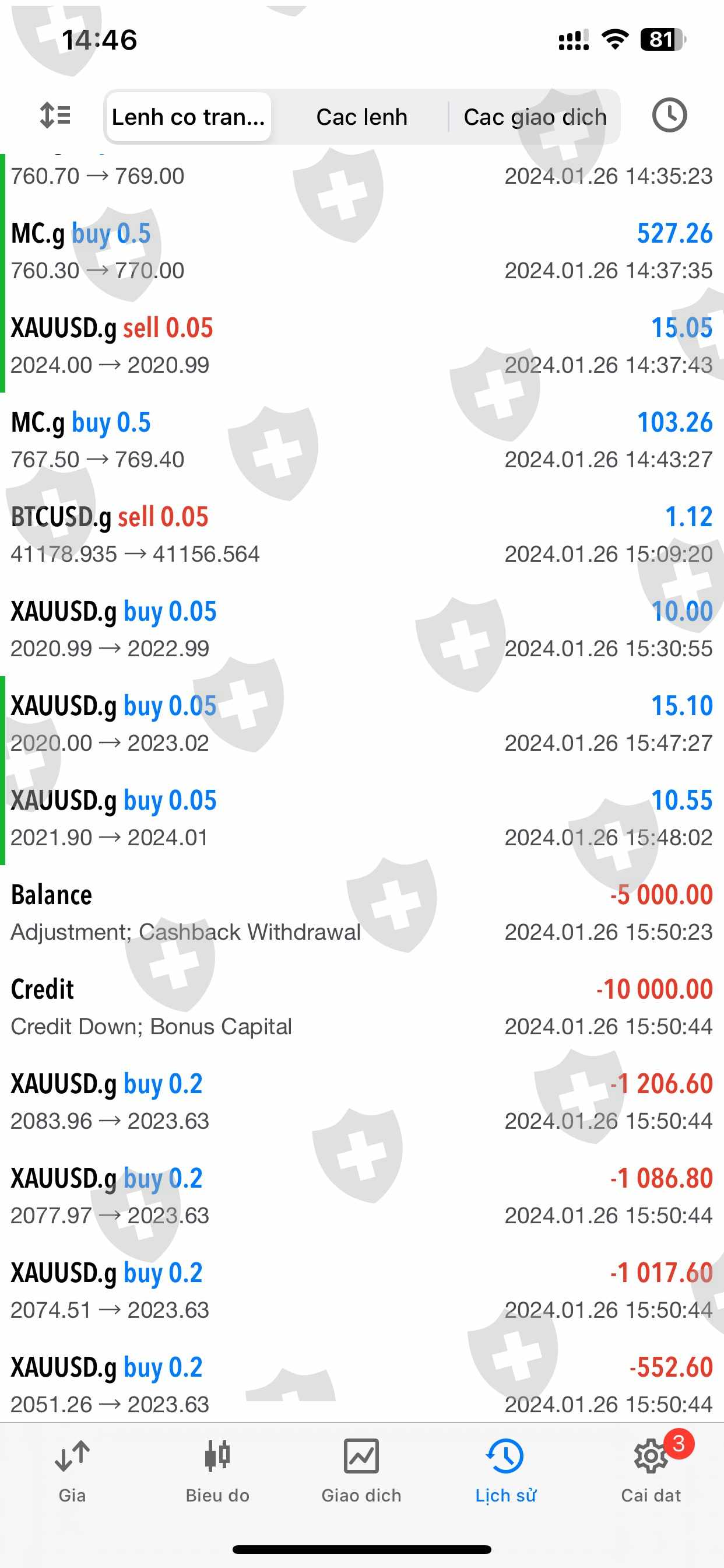 tiền Ngày 10/1/2024 Tôi đã giao dịch khoảng 50 lot sản phẩm, chủ
