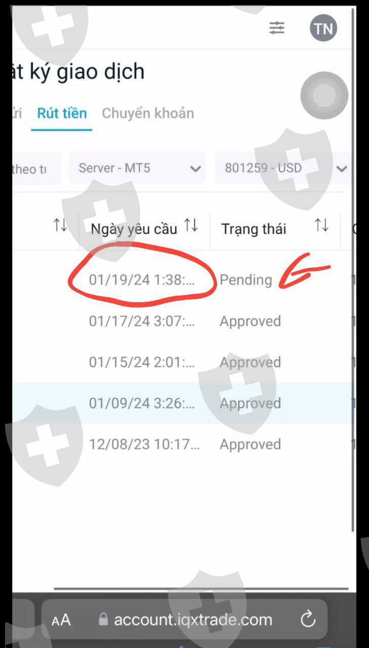 11月15日,我存入了第一笔5000 USDT,第一次的时候,我的交易还算稳定,但是到了12月份,我妈妈的账户就很负了,12月14日达到峰值,我的账户快要烧毁了,继续存入2000 USDT 至交易所。 12月18日,继续充值2000 USDT继续。但我注意到,将USDT存入交易所需要很长时间来处理存款订单,因此12月18日之后,我决定,如果我的账户继续为负数,我将存入越南钱。然后有几天就出现了大负数,我妈的账户上没有足够的钱充锣,我就跟朋友借了钱,让他按照开的账单在iqx上充值越南币,我就这样了。我自己也给她妈妈的账户充过一次功。 1月18日,我看清订单后,尽管账户一开始就显示盈利1382美元,但是 IQX Trade收取 1,131 美元的隔夜账户费用和高达 2,744 美元的中介费。所以我妈妈的账户实际上损失了 2,493 美元。意识到我母亲的账户被抽走并且为负数,我决定接受上述金额的损失,并从交易所提取剩余的资金。 1 月 19 日,我下达指令,提取母亲剩余的全部资金 6,251 美元。 IQX Trade不允许提款并发送涉嫌洗钱的电子邮件,要求我们配合并出现在办公室。我妈妈今年72岁了,在河内8度的寒冷天气里,iqx折磨着一位来回走动的老妇人。当我妈妈加入iqx hn的办公室时,她旁边有2个朋友,那天有还有两个朋友过来要钱,因为iqx没有付钱,我妈妈说,当她看到那两个人录制视频时,那里的男人威胁她并强迫她删除它。 iqx随后不断地发送电子邮件,迫使我年迈的母亲发表声明并按照他们的要求做一切。但最后我们收到了iqx的邮件,说我们洗钱,必须去找ib要钱。这是一种不可接受的欺诈行为,因为我有在iqx平台上存款的所有文件,我没有必要给ib钱,而到目前为止,因为我无法联系到那个ib,我必须上网. 赶紧想办法把你妈妈的钱要回来吧
