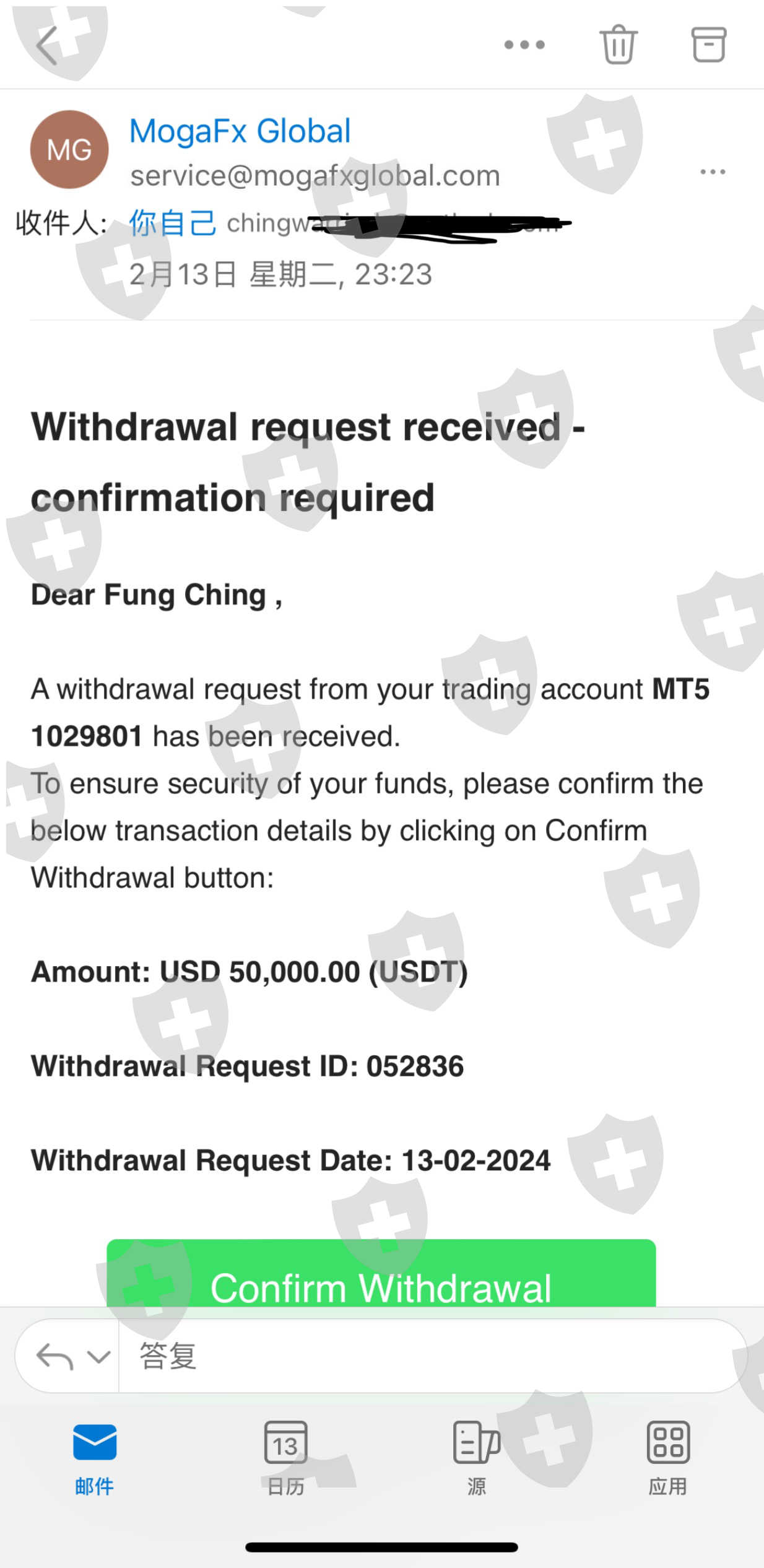 MogaFx 不回复邮件,取款申请也不被批准。他们随后发送了一封电子邮件,解释说平台在取款方面出现了问题,MogaFX 将很快关闭。