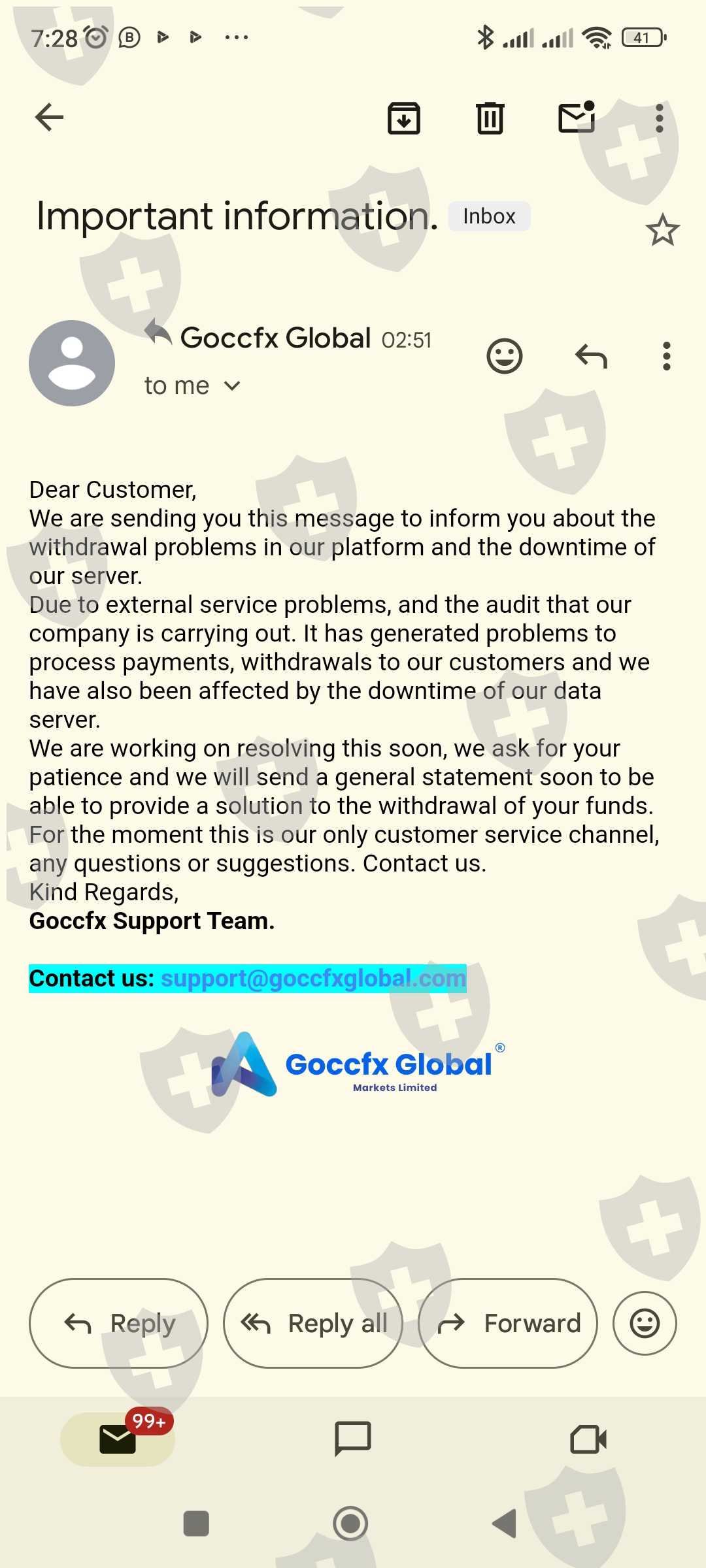 I have got a mail from costemer support but not recived my funds up to now i make with drew 20 day ago but i recived mail today from costemer support and not recived funds.