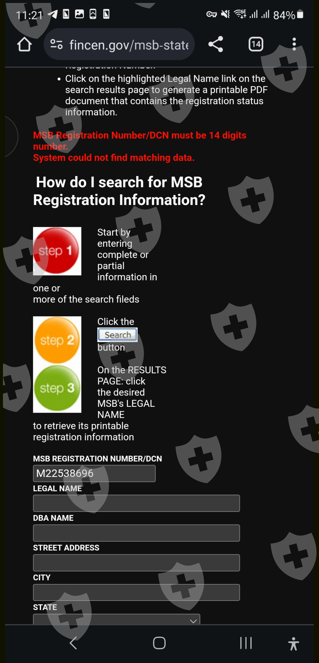 >MSB Registration Number/DCN must be 14 digits number.