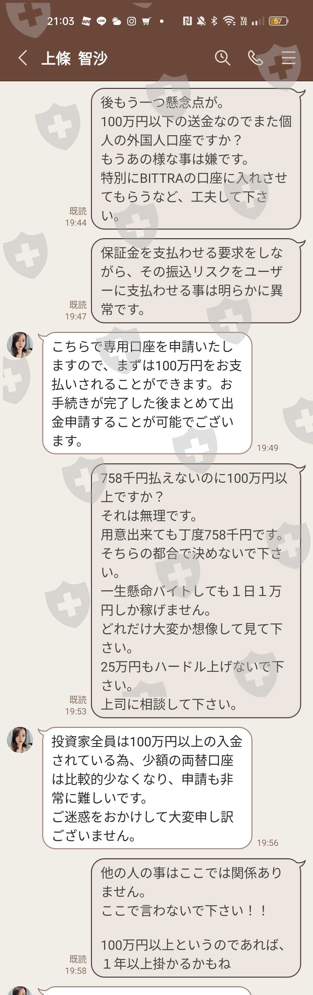 今天早上办理提款手续时,被告知自2月1日起内部规则发生变化,除非支付账户余额的20%,否则无法提款。就我而言,大约是76万日元,但我不知道为什么。另外,如果转账金额低于100万日元,只能准备外国个人账户,类似于上次银行被冻结的情况。在以往的历史中,即使 Bittra即使您指定了转账账户,如果账户被冻结,也是用户的责任。我简直不敢相信这个想法。我的本金在里面,所以我想拿回来,但我可能无法信任这个人。