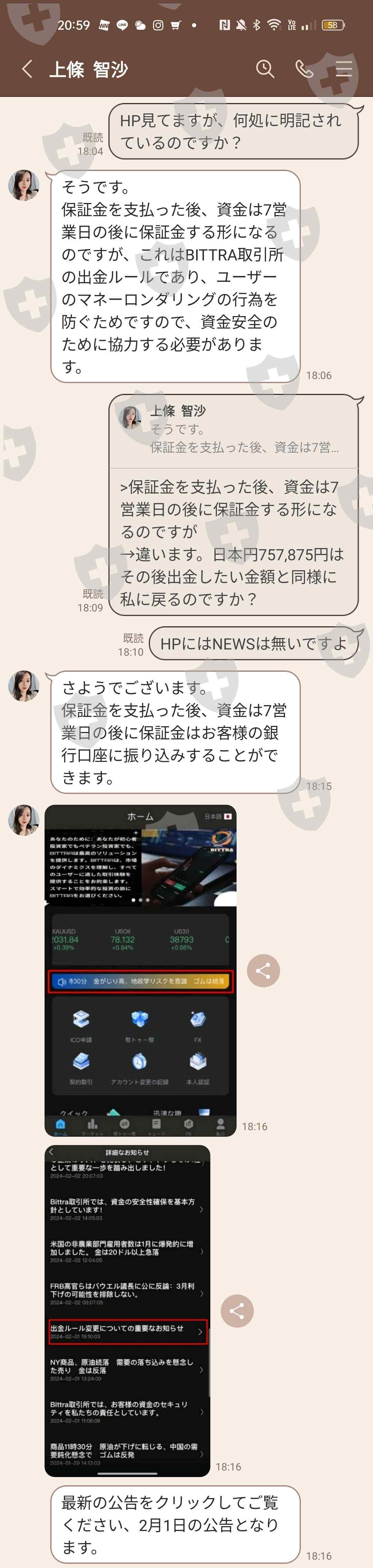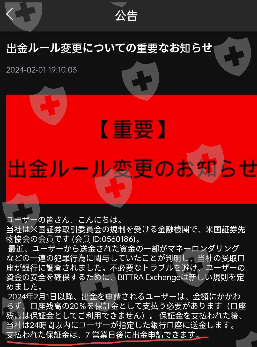 前回の履歴ではたとえBITTRAが振込口座を指定しても口座が凍結されればユーザーの責任でした。