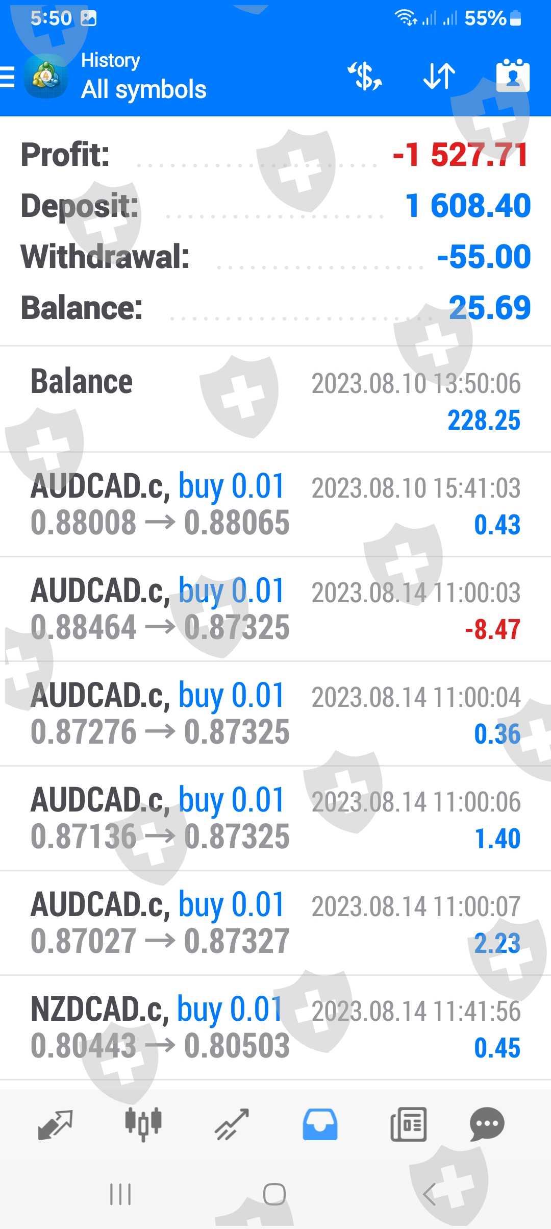 昨天,我的1600USD入金亏得只剩25USD了。诈骗交易商和READY MADE SIGNALS合伙,由菲律宾骗子操作。请远离这些骗子,他们会把你的钱骗光。我从去年8月开始入金,账户都没盈利过...