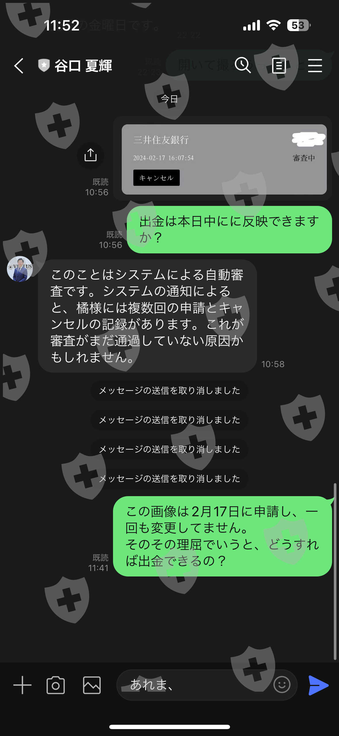 - 出金機能の強制停止とアカウント凍結の条件について、事前の説明がなかった。