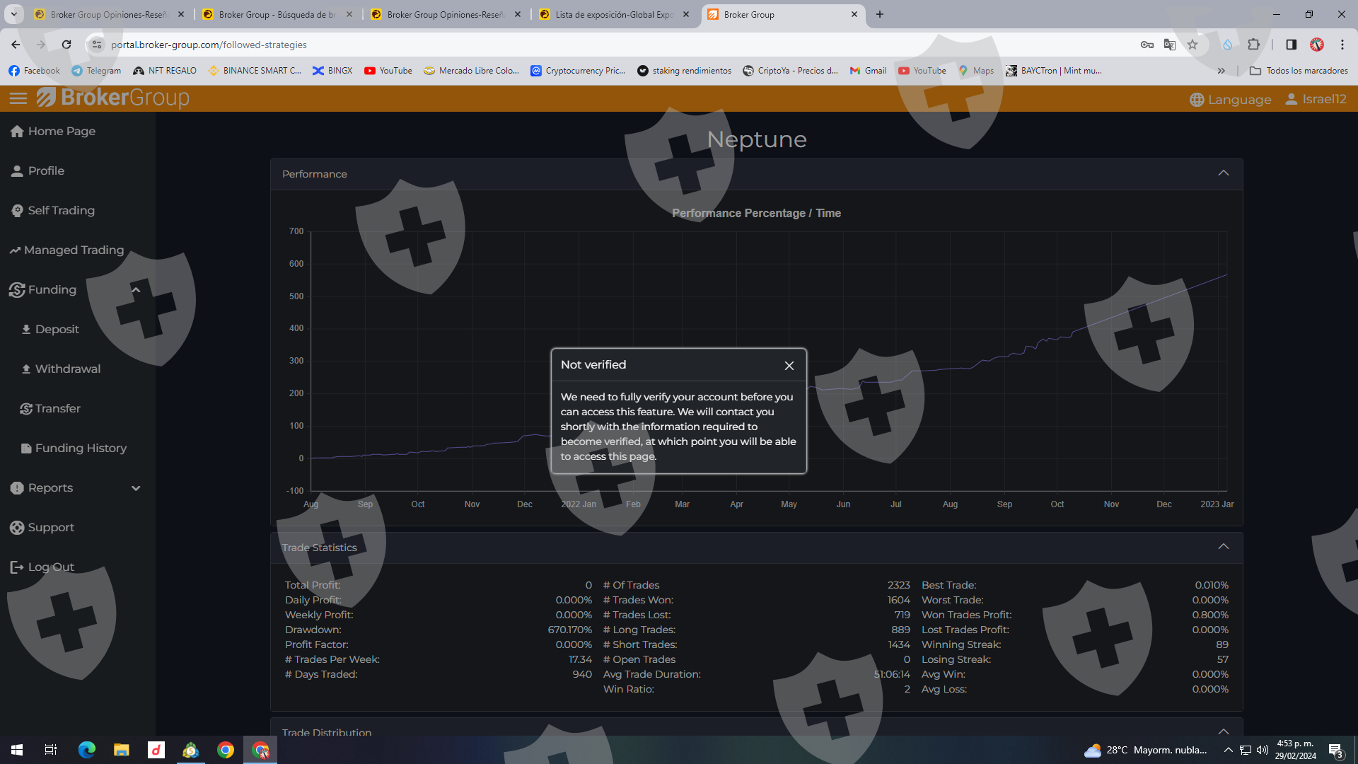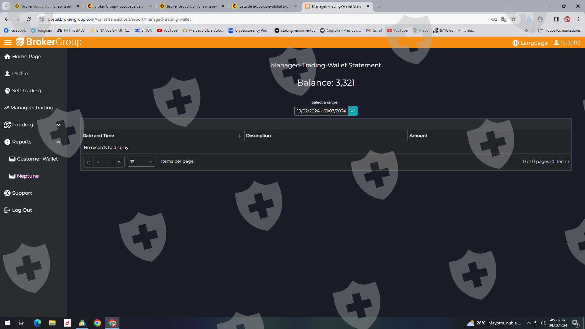 Actualmente tengo una cuenta de broker group, la cual cuenta con fondos de mas de 3000 dolares, de los cuales no puedo retirar debido a que no existe la opcion de retiro, llevo desde el 2022, desde que existia omegapro, tratando de retirar este dinero, hasta ahora nunca a llegado un correo para la validacion de identidad o retiro de mis fondos.