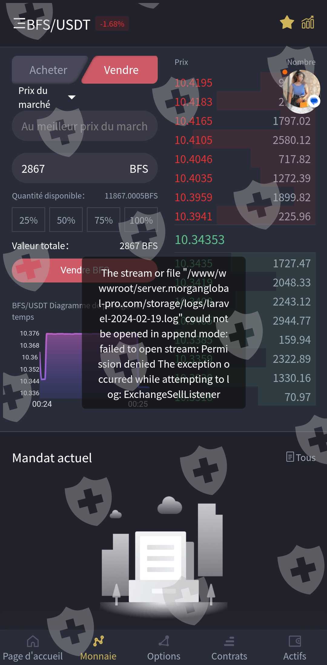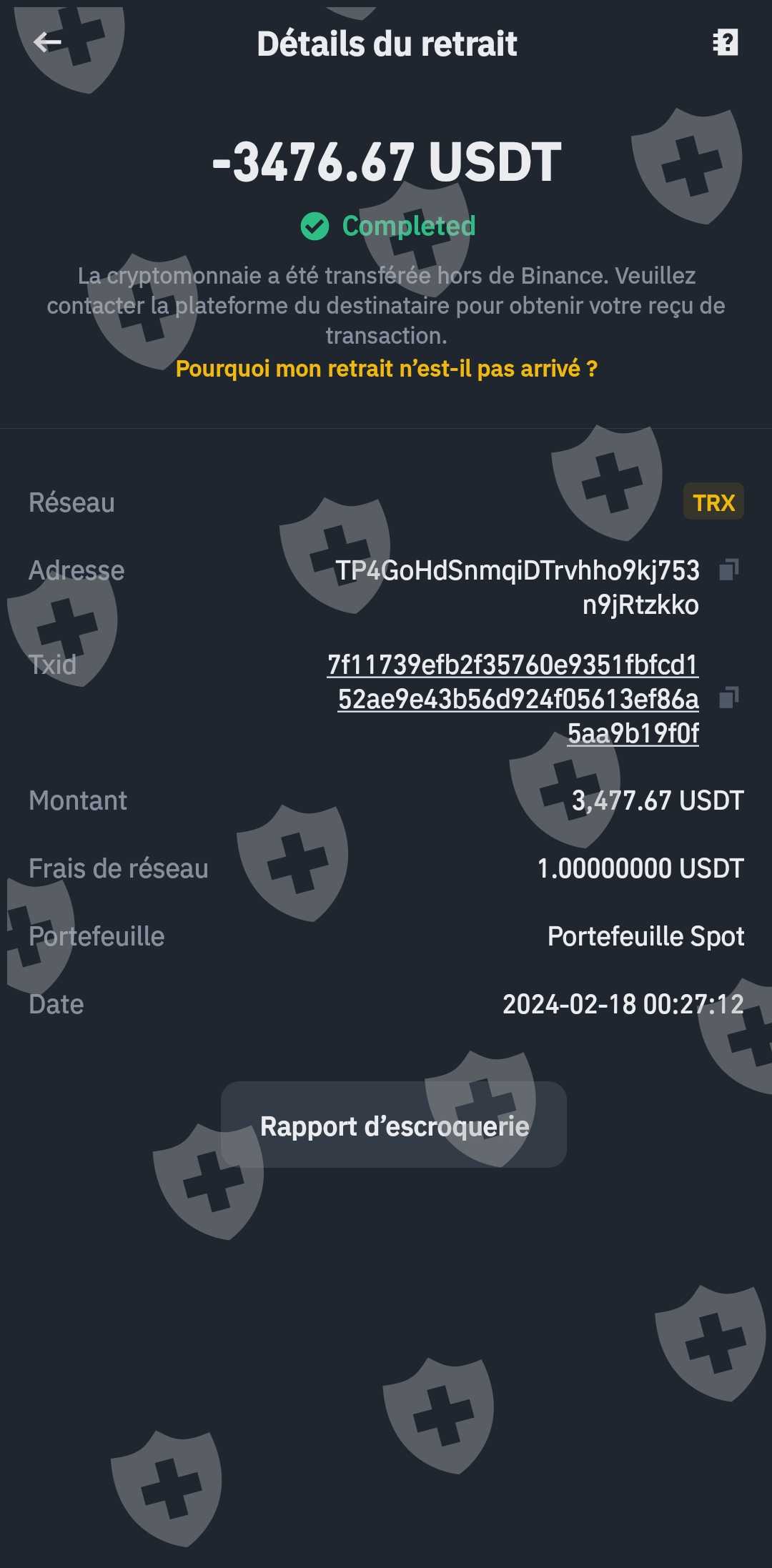 Quand j'ai voulu retirer l'argent le service client me demande de payer l'impôt qui fait 11,5% qui fait environ 20322$ a une adresse USDT