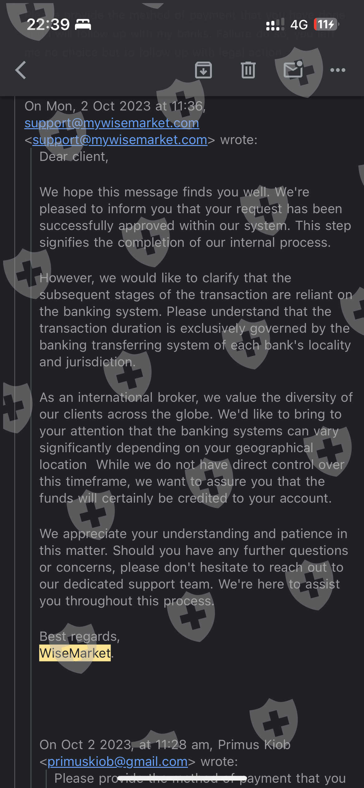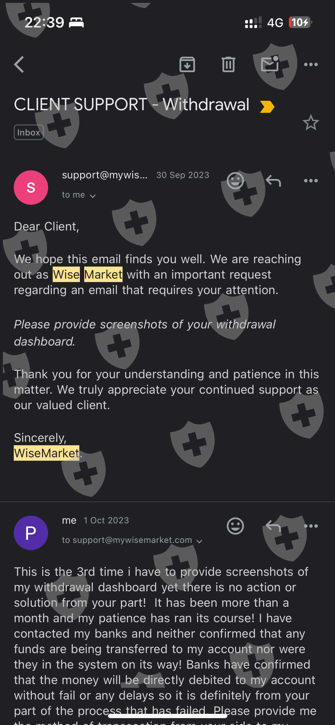you can see my frustration in the screenshots when my emails were only met with the same messages. i contacted my IB at that time but to no avail. she insisted that it was the brokers’ doing and not their fault.