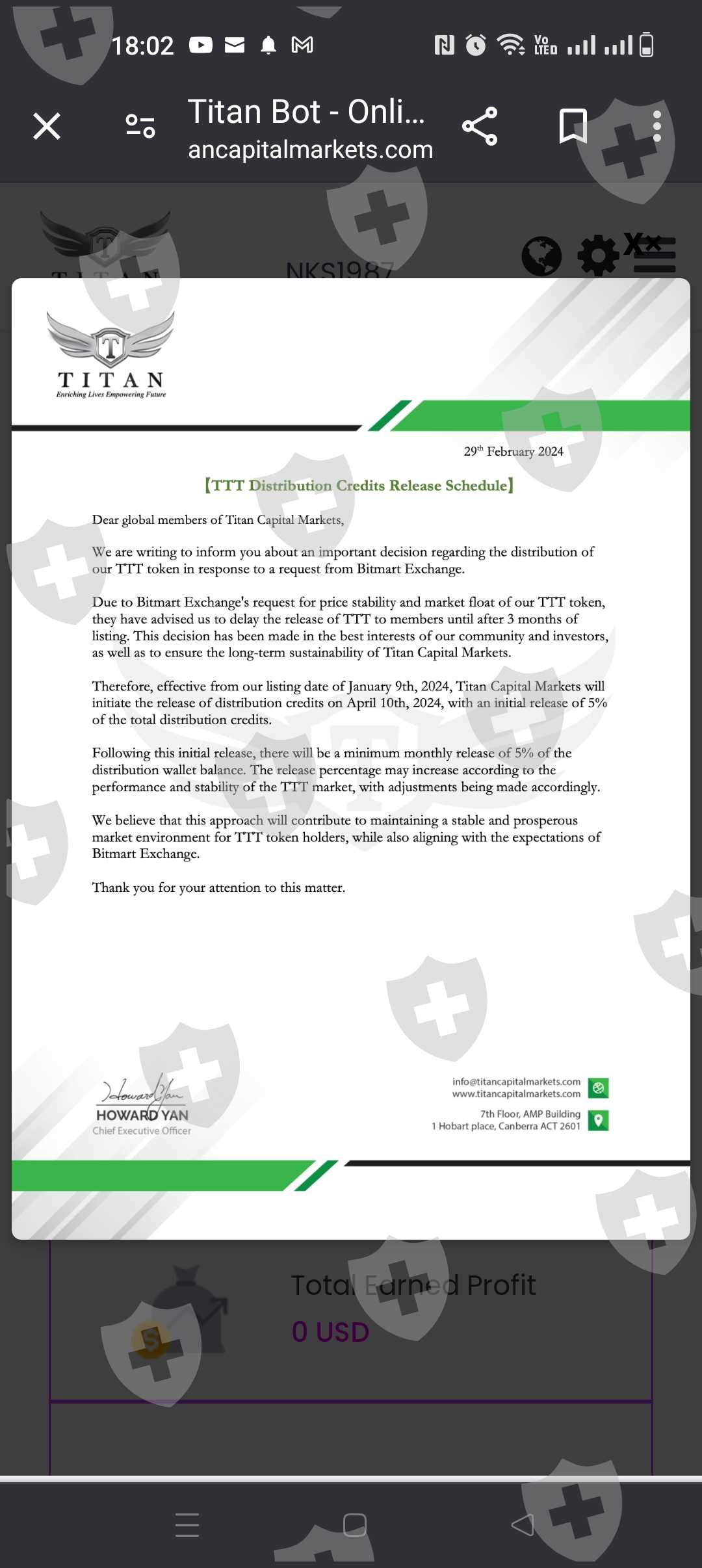 I urge Titan Capital Markets to immediately address this issue and honor the original agreement by removing any impediments to withdrawals from wallets. Failure to rectify this situation promptly will force me to consider taking further action to protect my interests and seek restitution for any losses incurred due to these unjustified restrictions.