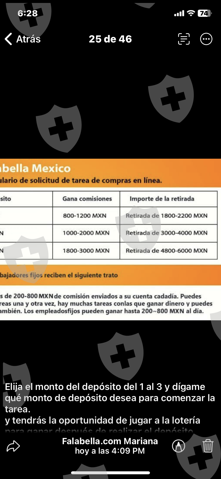 Me estafaron en falabella, tenía que completar tareas para ganar una comisión y terminaron congelando mis ganancias, así que no puedo retirar mi dinero.