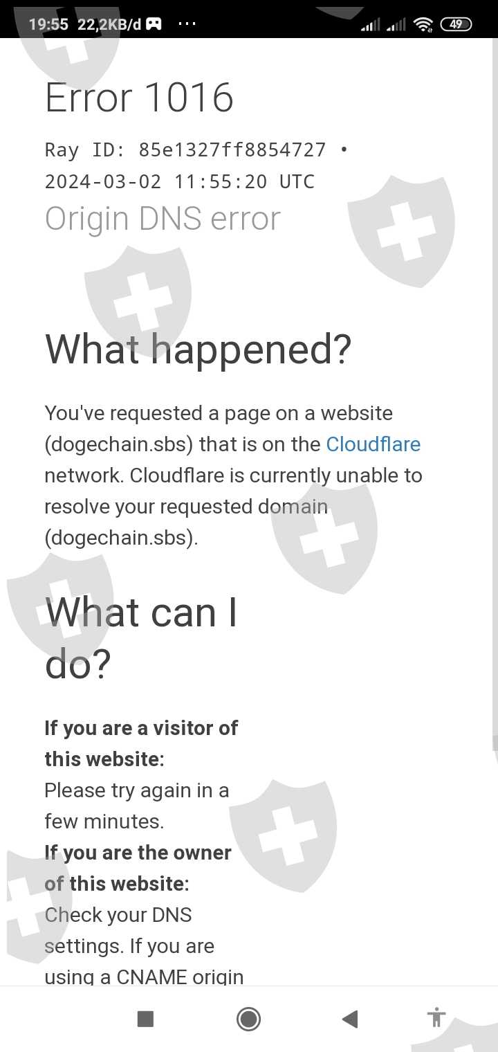 You've requested a page on a website (dogechain.sbs) that is on the Cloudflare network. Cloudflare is currently unable to resolve your requested domain (dogechain.sbs).