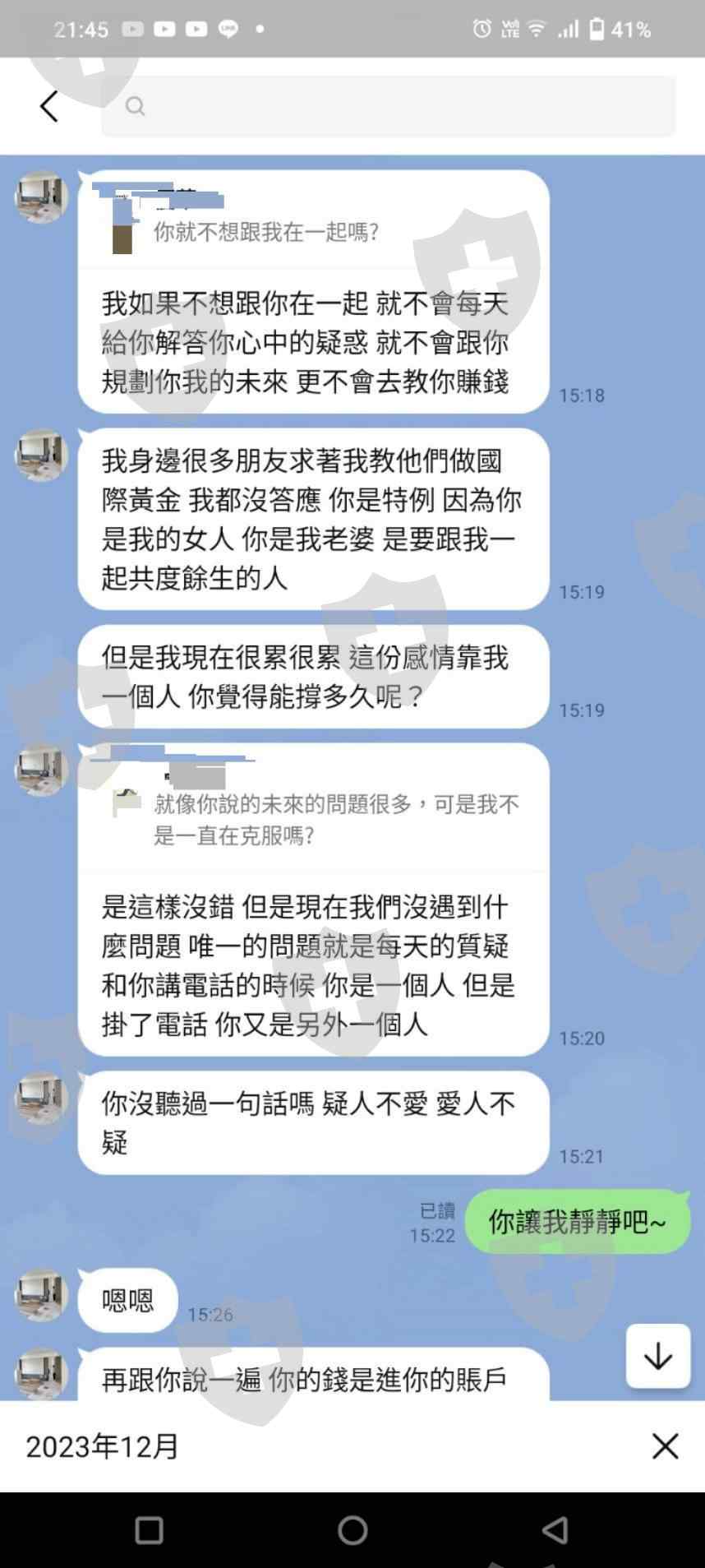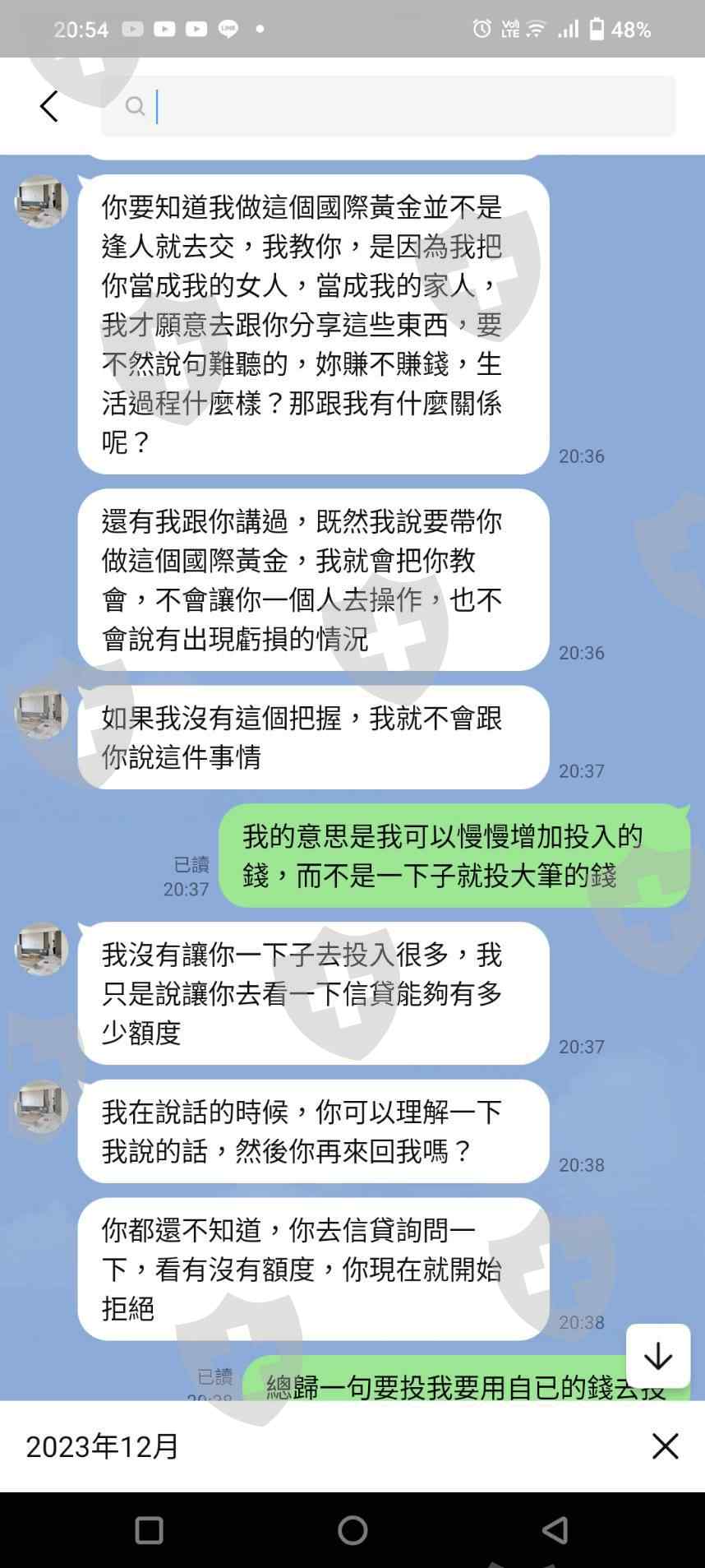 加好友後每天聊天三餐問侯關心、甜言蜜語,也聊到生活狀況,他一直說希望能改義我的生活,並且說女人要有自已的小金庫,他自已就因為疫情所以有被隔離期間是沒有收入的,後來自已就專心的研究國際黃金,也是有所收益,他說會帶我一起做。