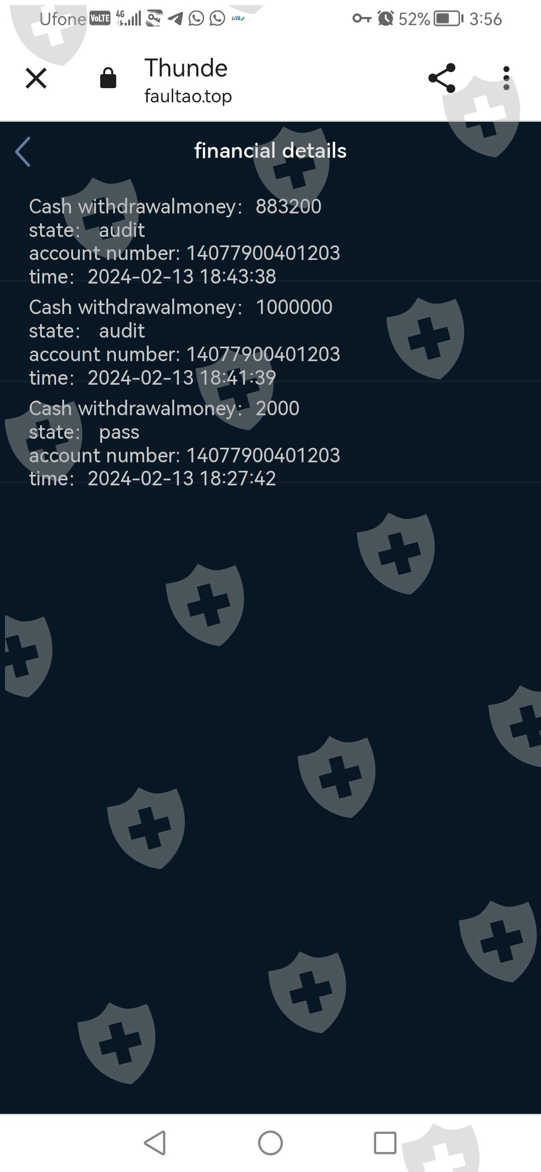 I invested 1500000 in this someone text me on WhatsApp that its a freelanceing wrk from home and they start from small investment on 1st investment they send me 1800 commission and then they share their plans i buy 200000 pkr plan and they said i commit a mistake and i have to snd more money to resolve my mistake i snd 1500000 in 7-8 transection but at the time of withdrawal they only snd me 2000 rps into my accout and said the system is freeze and you have to submit more amoint to unfreeze your account and then you can withdraw your amount i have attached all screenshot kindly help me to withdraw my all amount