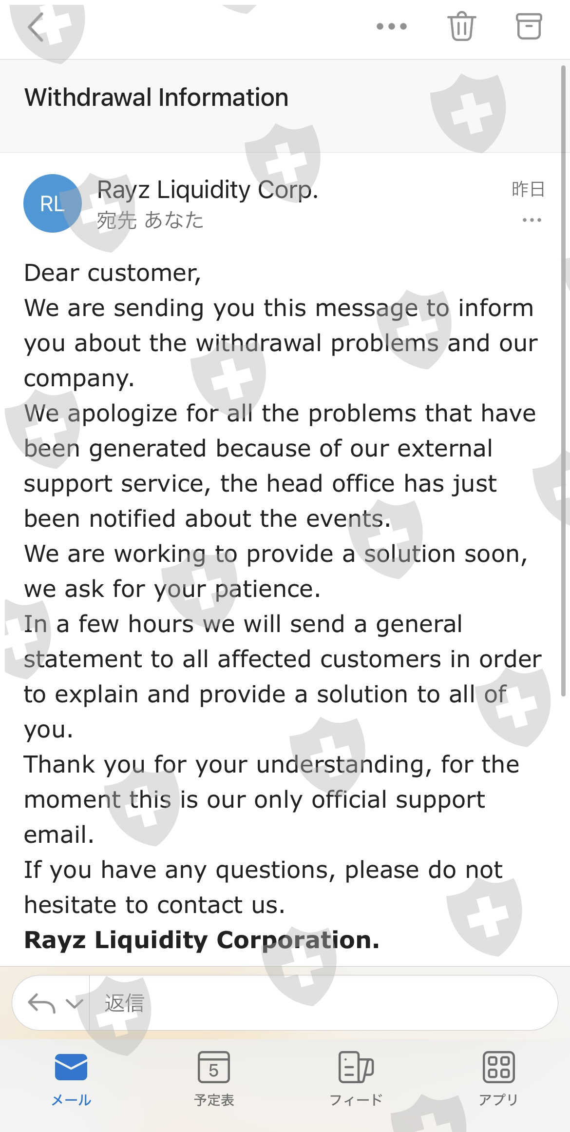 我在 Rayz 投资了大约 75,000 美元并获得了一些利润。一切都很顺利,直到我出现提款问题并且支持团队没有反应为止。今天我收到总公司的消息说他们会帮我提款。我希望他们能帮助我