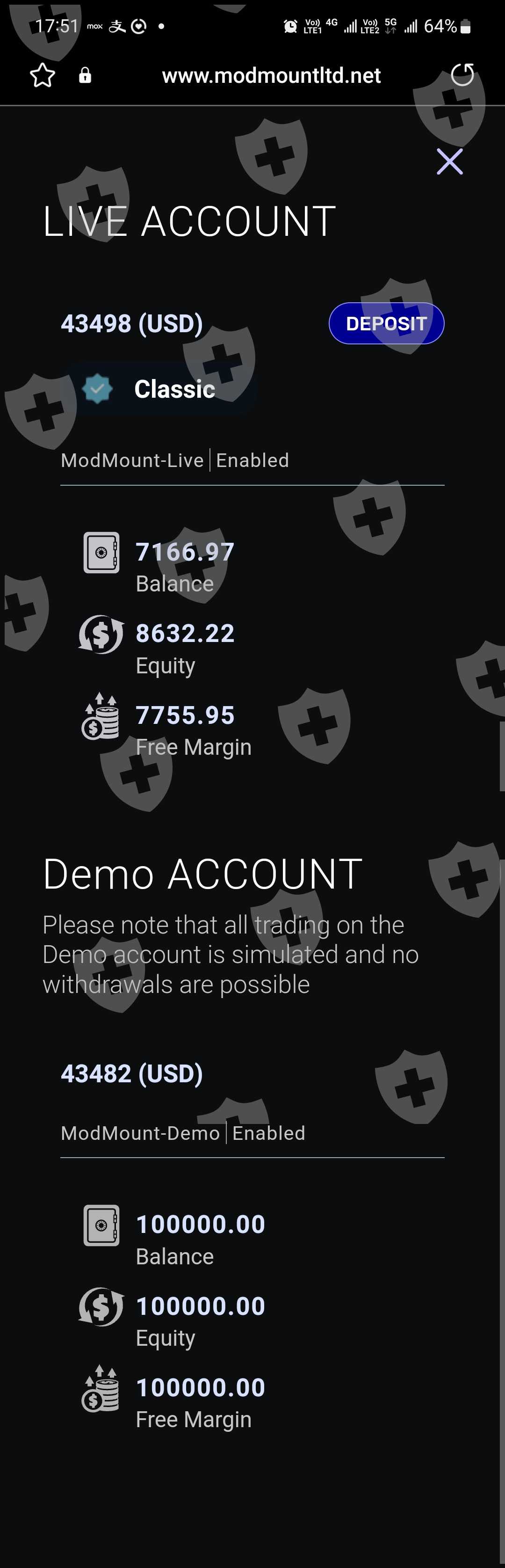 本人2月中在社交軟體Facebook被誘騙入局留下個人資料,其後Modmount Services Ltd人員致電本人說已經替本人開了户,之後不停施壓本人入金,並全程由該公司2位人員(一叫Mark, 另一叫羅伯特)(下稱公司代表)替本人操盤交易(完全未經本人同意),本人多次入金共13,000多美金,之後該公司代表強行替本人操盤並刻意虧損(只設定止盈沒有止損)本人資金,虧損至近7千美元,本人曾多次要求止損不果,最後本人强行平倉及要求出金(提款),但Modmount毫無理由完全拒絕我出金。
