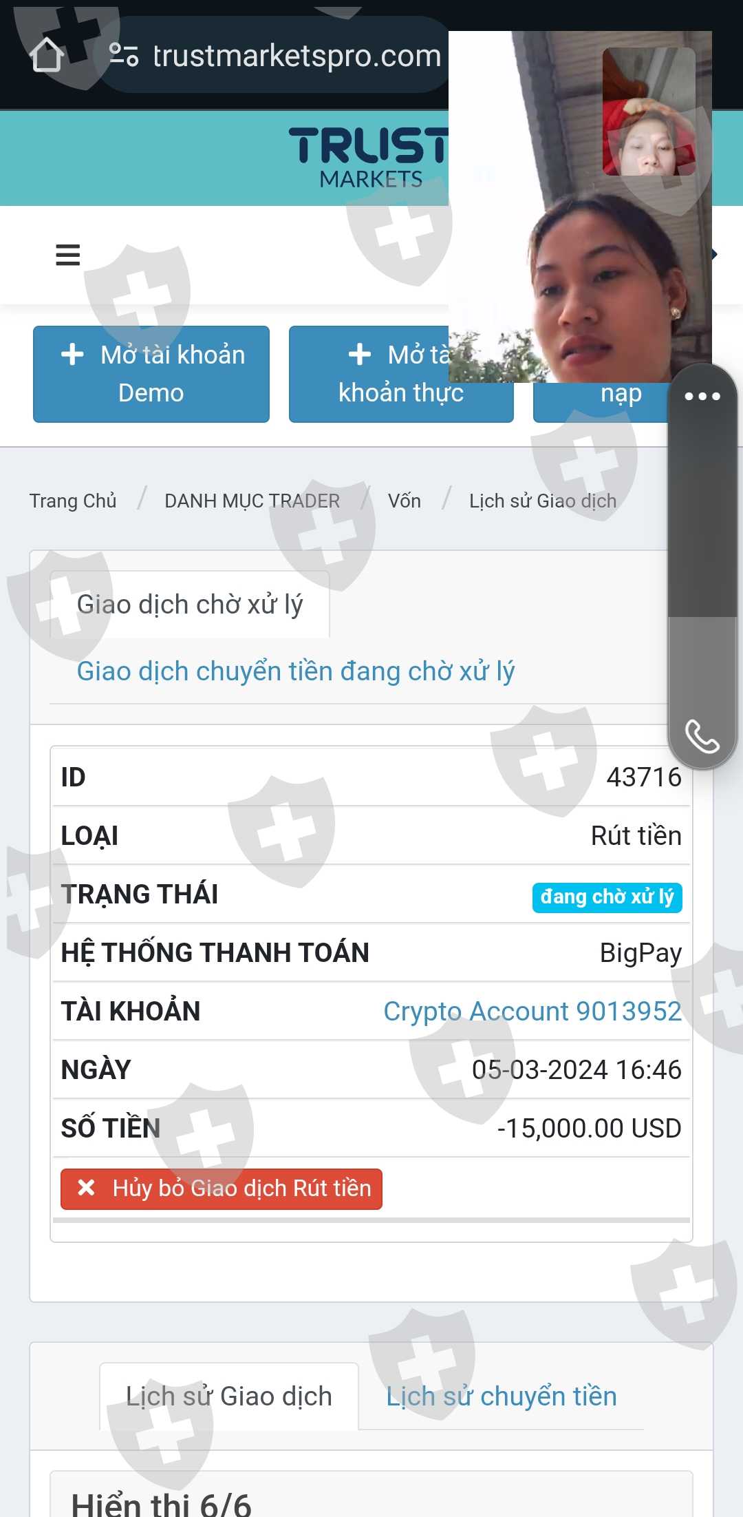 Xin ad giúp tôi lấy lại tiền vốn của tôi ! Tôi đã từng nạp vô sàn hơn 10.000 đô ! Tôi đã đặt lệnh rút 15.000 đô ! Từ ngày mùng 5 tháng 3 xin ad giúp lấy lại số tiên