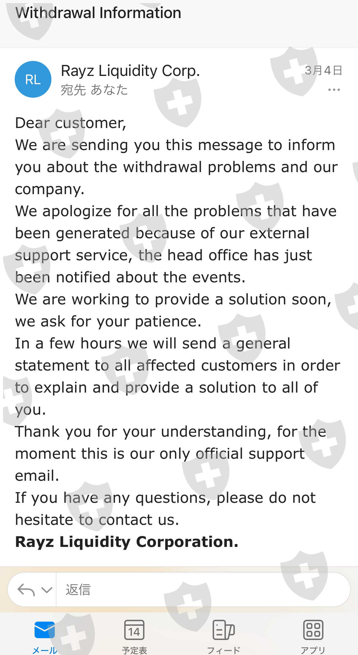 お金が引き出されるのを1カ月以上も待っている。サポートチームは長い間返信を止め、3月4日に会社で起こったすべてのことを説明するメールを送ってきました。