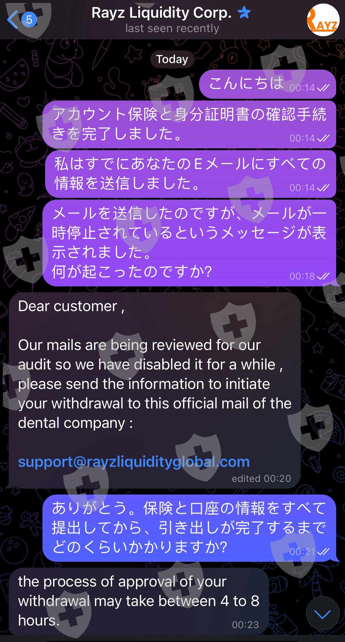 私が出金依頼をしようとしたとき、メールは中断されていました。