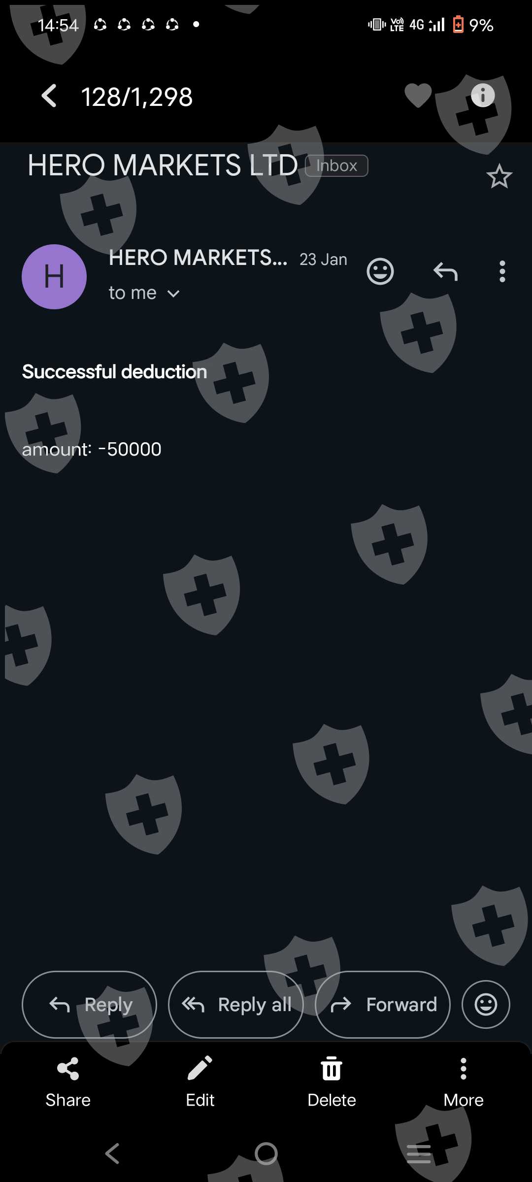 我在 Hero Markets LTD 投资了 20000 美元。 当我想出金时,他们要求支付20%的策略费用。 当我支付 8500 美元的策略费用时,他们说我的金额被冻结,我必须支付 1000 美元作为解冻费。 当我支付完,他们说我的提款金额比较大,我必须支付更多的解冻费,再多付1000美元。 我说我没有那么多,他们同意减少到 250 美元。 当我付完钱,他们就不回复了。 拜托,我需要帮助,失去了所有的钱。
