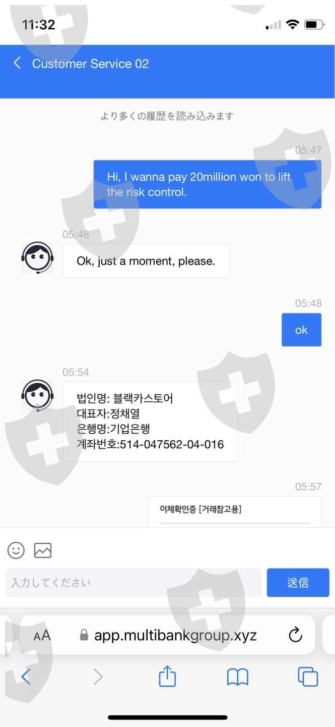 multibankgroup.xyz是该交易所的网址。 我通过一位日本朋友的介绍开设了一个黄金交易账户。 我按照朋友的指点开始操作,并且盈利了。 我试图提取利润,但我必须纳税,因为提款金额很大,我必须支付2000万韩元,我必须升级我的帐户,因为我的流动性有风险,我必须支付2000万韩元,并且 我必须支付3000万韩元用于安全级别升级。 两周时间里,他们拿走了我7000万韩元以上的钱。 客户中心没有给出合理的解释,只是要钱,而当我联系Multibank Group时,发现他们与Multibank Group没有任何关系。 我的日本朋友一开始声称这只是一次性的事情,现在他说他对我投资的钱感到抱歉,并希望自己存入1000万韩元来帮忙。 我要疯了。 我已经借了很多贷款了,我想抓住这些骗子。 我也在咨询律师,和这位日本朋友还在联系,网站还在运营。 经调查,该网站似乎是由 Sundell Ltd 创建的。我现在已经向 FBI 举报了他们,我希望这些人被抓获。