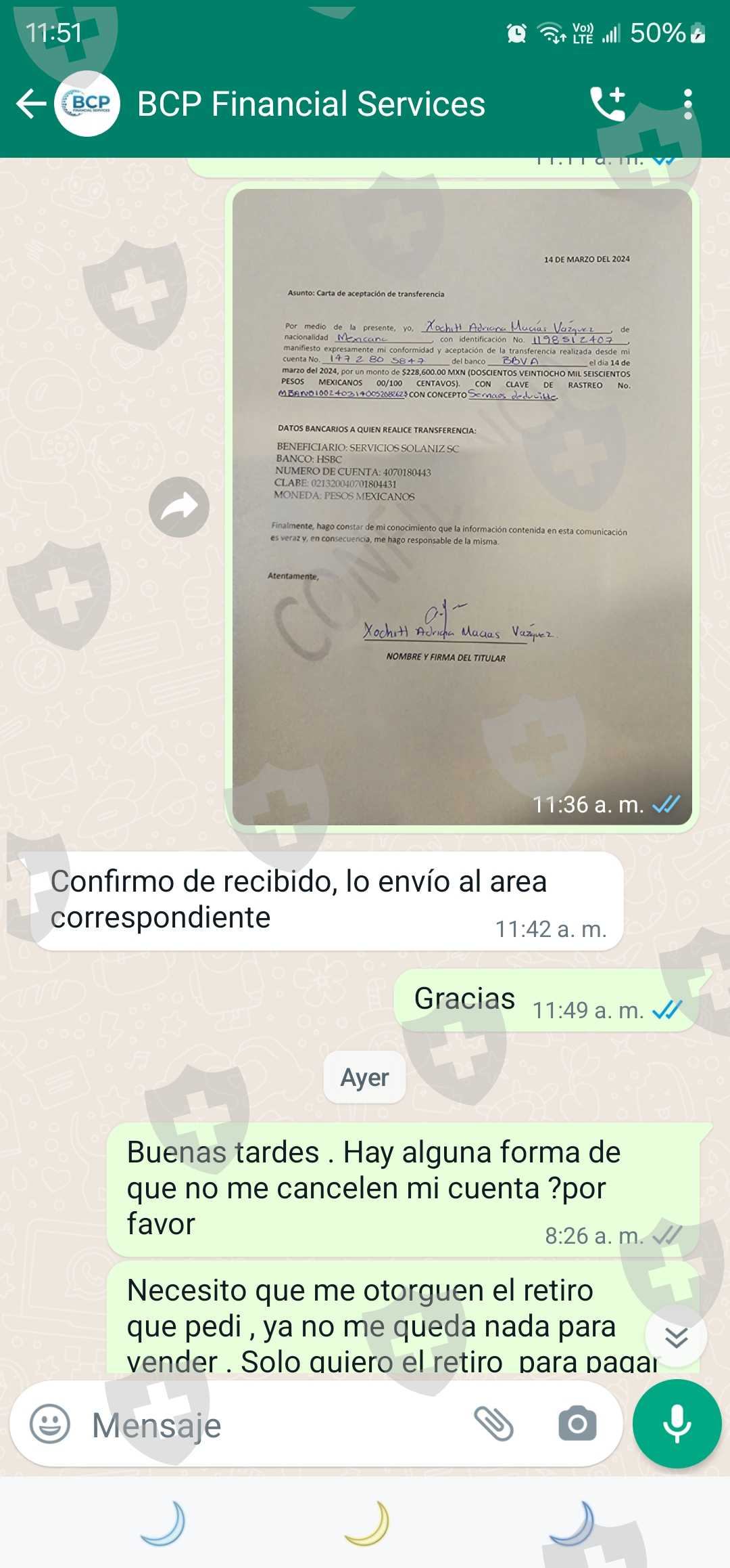 BCP financial services incapacidad de retiro