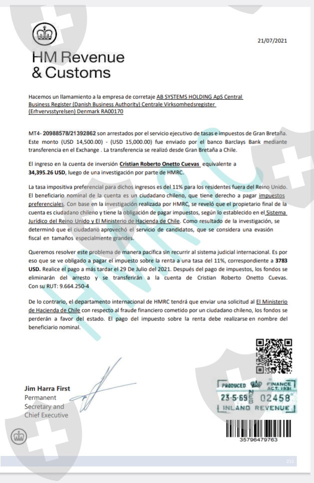 我被骗了 ABSystem3年前的金额为11,540美元。这笔钱是通过智利(我来自那里)的 Buddha 虚拟兑换所提取的,这发生在 2021 年 7 月,截至今天我还没有回复。