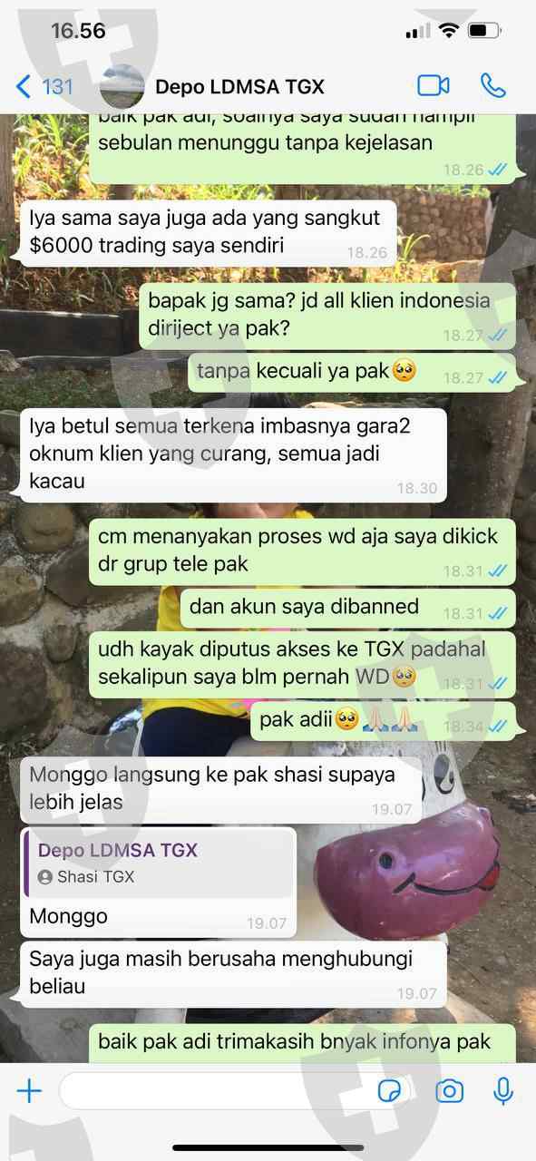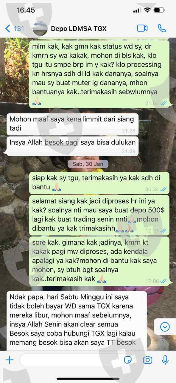 Padahal baru sekali transaksi modal 500$ sudah profit jadi 1.449$ mau saya tarik malah ditahan dan tidak dibayarkan sampai sekarang , bahkan yg menanyakan WD di grup langsung di kick