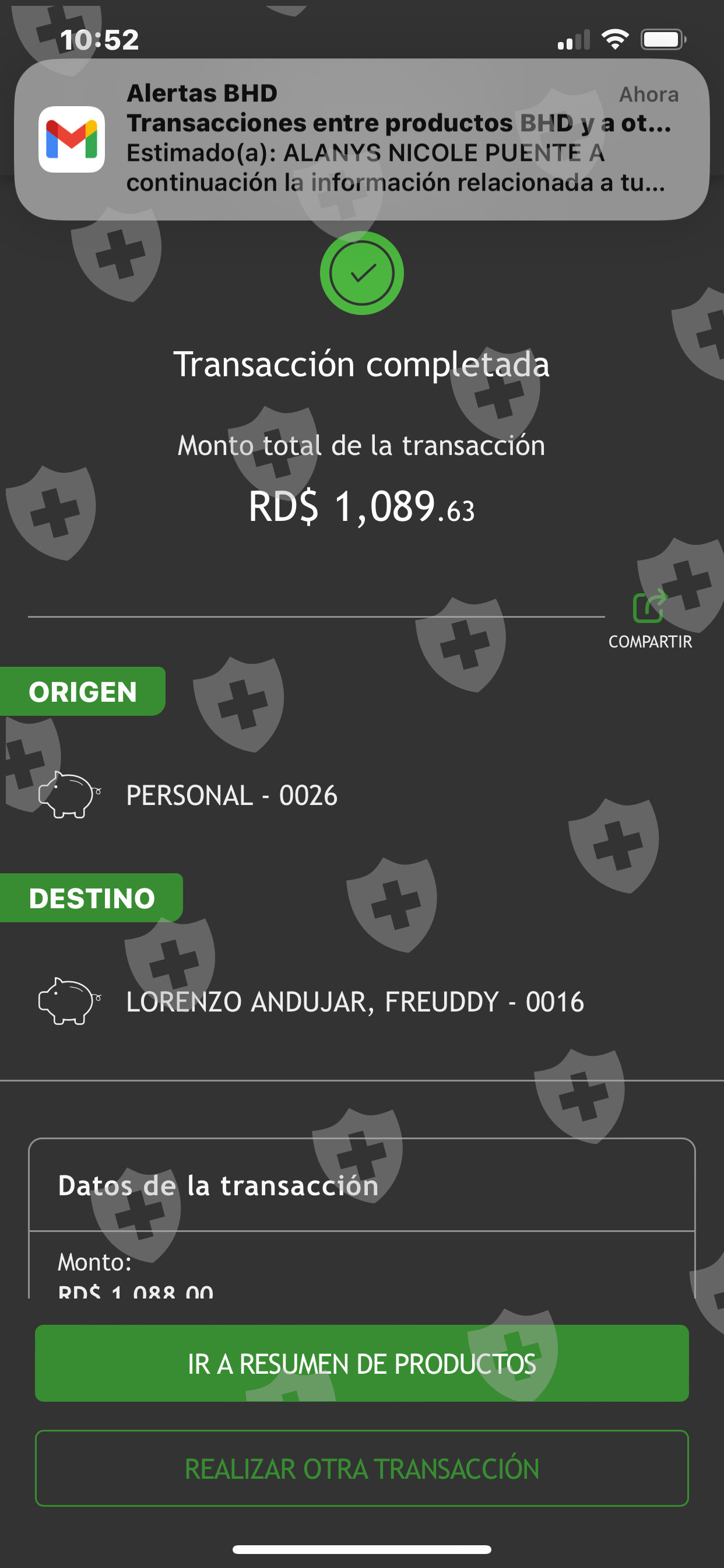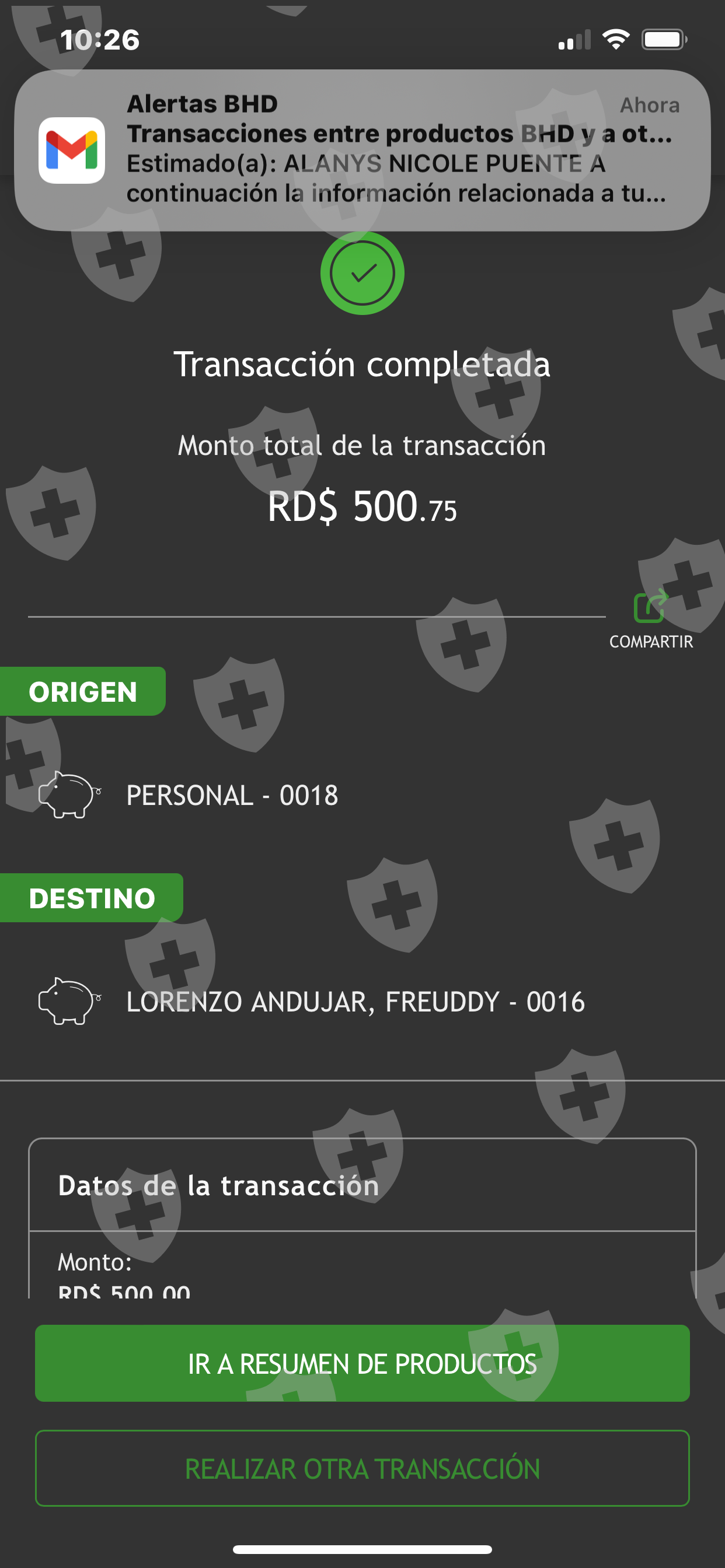 Por favor ayúdenme ahí están los nombres de las personas de quien les hice el deposito y todo