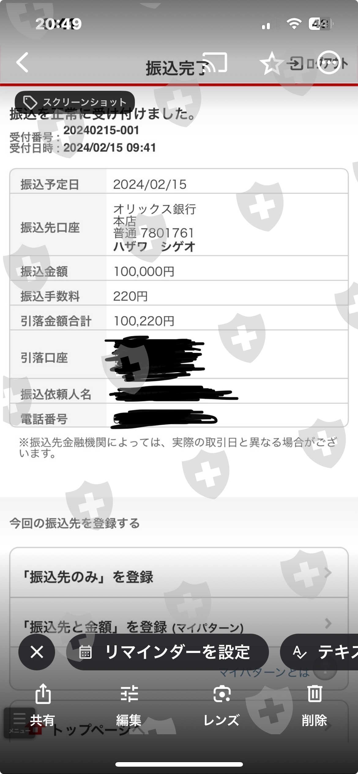 1ヶ月以上経って40000ドルの出金をしたい旨を担当者(徳島正治)に伝えると、取引所アプリから手続きするように言われそのようにする。しかしなかなか振り込みはされず、何度か問い合わせた後利益分に対する税金を払わないと出金できないとの回答。そもそも出金に条件があることなど一切説明を受けておらず、そのことに対して問い合わせても明確な返答はなし。