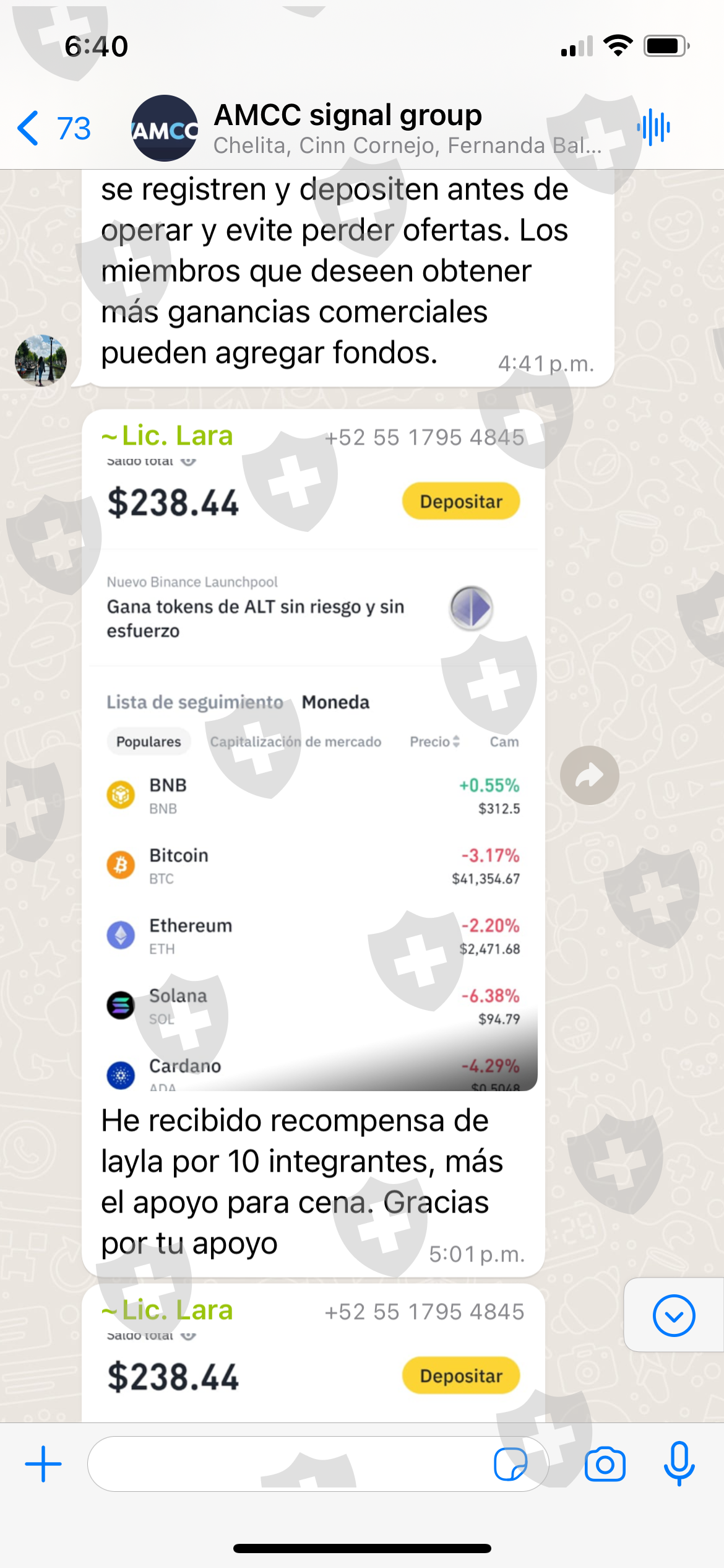 El motivo de mi mensaje es para saber el estatus de mi cuenta que fue bloqueada, ya mandé toda la documentación como fue solicitada. Quiero aclarar que un familiar directo , me invitó a formar parte de la plataforma AMCC, vinculada a Binance , bitso para subir y bajar fondos de carácter económico . La mentora principal de esta plataforma en el cual yo estaba dentro de su equipo se llama LAYLA con nombre en Facebook: Shirley Leong. Nos pedía que desarrolláramos un equipo de 10 personas para poder operar dentro de AMCC , de tal manera que recibíamos una recompensa por invitados de cinco dólares por ella , cinco dólares por el mentor que está arriba de ella, a lo cual esto me llevó a invitar a mi propia familia a hacer parte de este proyecto. Quiero solicitarles de la manera más cordial y respetuosa que liberen mi cuenta ya que no teníamos conocimiento de que utilizando la misma IP o red wifi incurriera en incumplir las reglas de AMCC. Mi esposa y yo fuimos utilizamos la mísma red wifi , nunca nos percató La mentora LAYLA que enviaba las señales comerciales solo nos amenazaba en cancelar nuestras cuentas y no poder seguir operando.