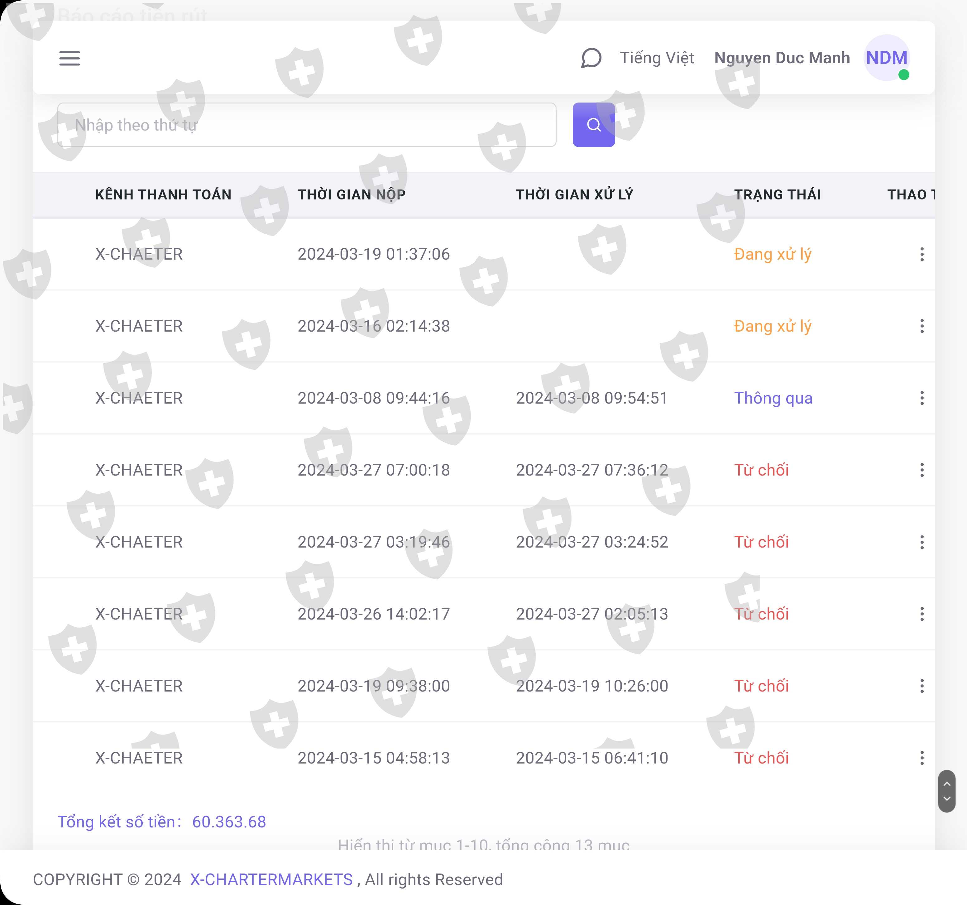tôi đã đặt lệnh rút tiền nhiều lần nhưng từ chối.