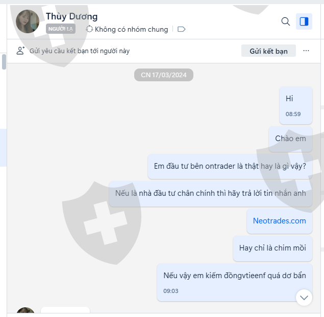 100% bonus) không có. Sau khi hoàn thành nạp tôi có gửi bill nạp này cho @Minhvy. Cô này nói đã tiếp nhận hồ sơ của tôi và chuyển lên cấp trên để chờ xét duyệt bảo đầu giờ chiều sẻ xong và sẻ làm lệnh rút được. Sang chiều tôi liên hệ lại thì cô ấy bảo phải 5h chiều mới duyệt. Khoảng 16h cùng ngày thì có người gọi cho tôi từ tài khoản telegram nói là người của sàn Neotrader đồng thời đọc tên tôi, stk MT5 giao dịch của tôi, báo tôi có lệnh rút tiền nhưng vì ví chưa liên kết đc với tài khoản ngân nên anh cần thực hiện lệnh giao dịch mã platiium này mới liên kết được và rút được tiền. Tôi thực hiện giao dịch lệnh buy luôn theo họ bảo với khối lượng 3.0 tài khoản âm luôn 2,700$, rồi cô ta bảo anh vào lệnh sell khối lượng vậy luôn tôi làm theo. Ngay lập tức tài khoản tôi bị âm vào gốc và bonus. Tôi vội liên hệ chi Minh vi thì cô