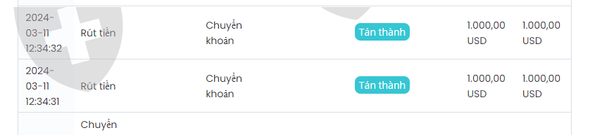 11/3/2024 bạn này nói sàn đã đồng ý cho tôi rút tiền đồng thời nói: Các em vừa họp xong đang có chương trình khuyến mại bonus 100% cho ai nạp từ 3000$ trở lên và tặng kèm 1 cấy vàng trị giá 730$ đồng thời chỉ tôi rút về 2000$ (tiền gốc tôi nạp vào các ngày 24/1 và 28/2