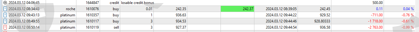 giờ Việt Nam) ngày 12/3/2024 tôi nạp tiếp 1000& vào tài khoản trên với mã giao dịch Q1804286 khi hoàn thành trong tài khoản chỉ được cộng bonus 500$ còn tiền thưởng bonus vaf vàng (730$ và