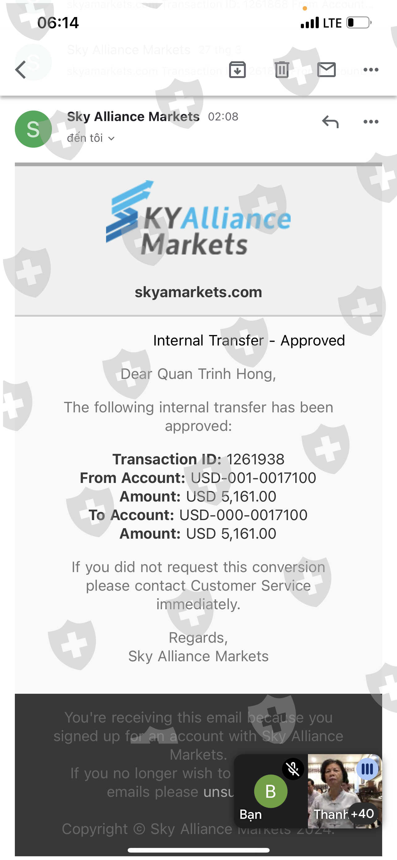 NGÀY 27/3: SAU KHI CẮT HẾT LỆNH TÔI ĐÃ CHUYỂN KHOẢN SỐ TIỀN 4.761usd SANG TK NỘI BỘ, SAU KHI RÚT TIỀN TRONG TK CÒN 2U VÀ 500USD BONUS CỦA SÀN, TÔI TIẾP TỤC TRADE VÀ CK SANG TK NOI BỘ TIẾP 280USD. TÔI ĐÃ LÀM LỆNH RÚT TIỀN VÀ BÁO SUPPORT NGƯNG COPYTRADE. VÀO 2H SÁNG NGÀY 28/3 TÔI DẬY CÓ VÀO XEM TÀI KHOẢN THÌ PHÁT HIỆN TIỀN BỊ CHUYỂN NGƯỢC LẠI TK GIAO DỊCH VÀ ĐANG CÓ 6 LỆNH SELL GIÁ GẦN NHƯ NHAU, TÔI THẤY SỰ BẤT THƯỜNG Ở ĐÂY VÀ ĐÃ CẮT HẾT LỆNH, LÚC ĐÓ CẮT LỆNH TK CỦA TÔI LÀ 5161USD. TÔI ĐÃ CK SỐ TIỀN 5161USD NÀY SANG TK NỘI BỘ VÀ ĐÃ NHẬN ĐƯỢC EMAIL XÁC NHẬN CỦA SÀN. SAU ĐÓ TÔI ĐI NGỦ. SÁNG DẬY TÔI KIỂM TRA TK ĐÃ CHÁY.